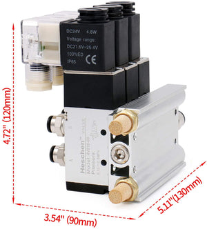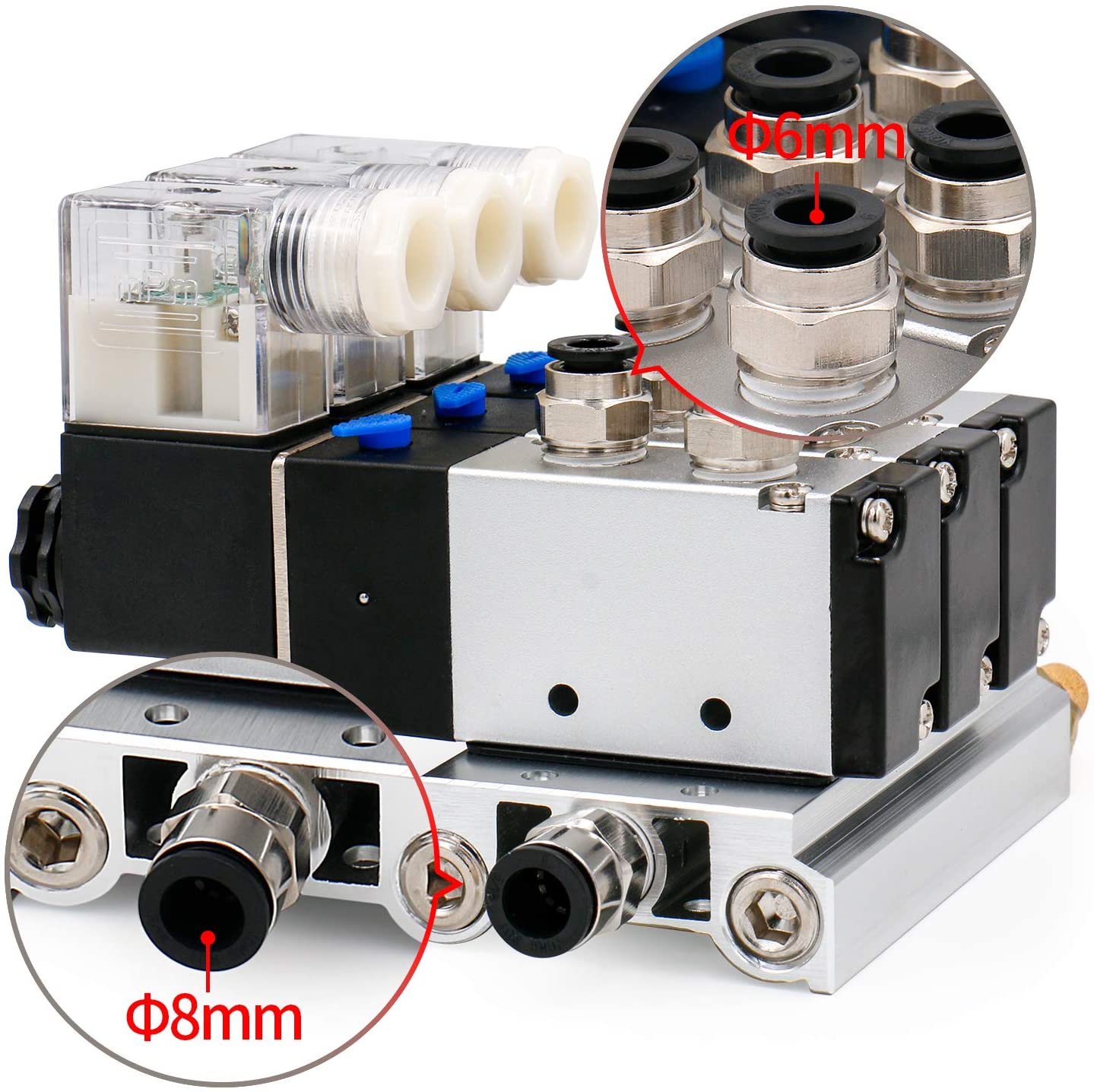 Heschen Electrical Pneumatic Triple Solenoid Valve 4V210-08 PT1/4 5 Way 2 Position Manifold Base Muffler Quick Fittings Set
