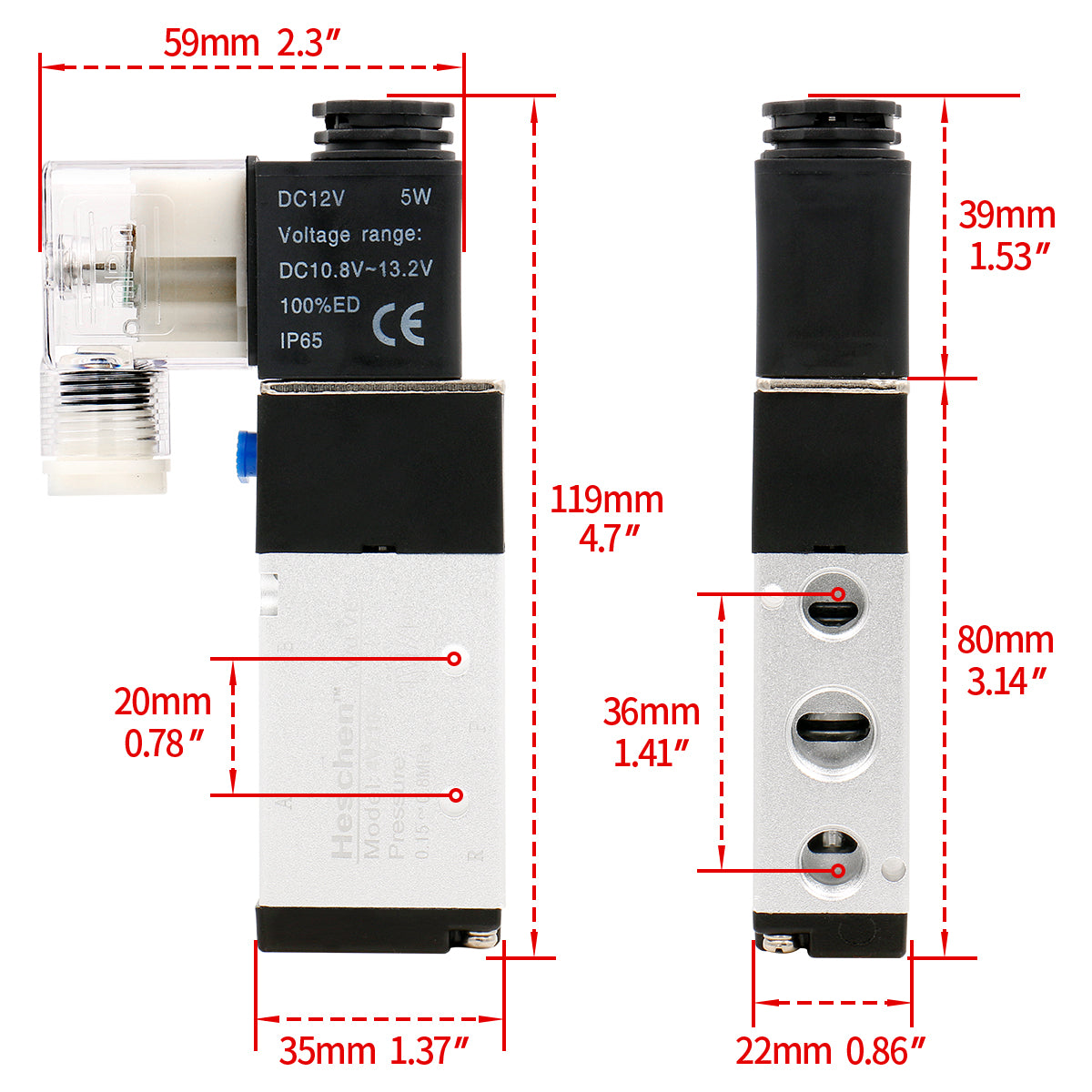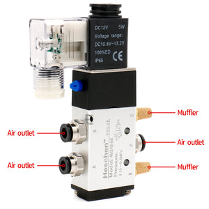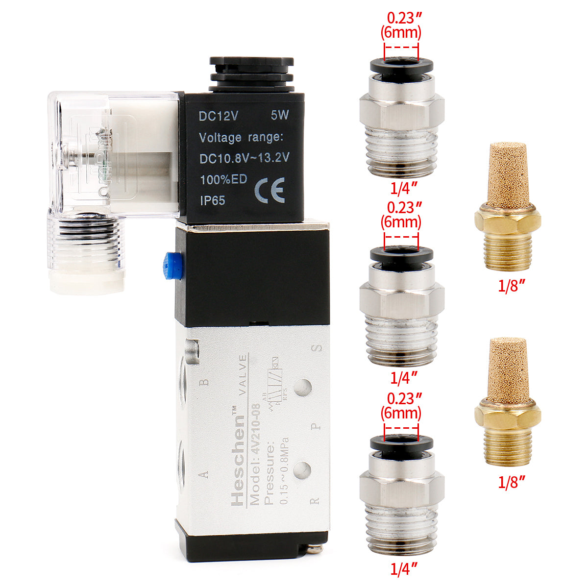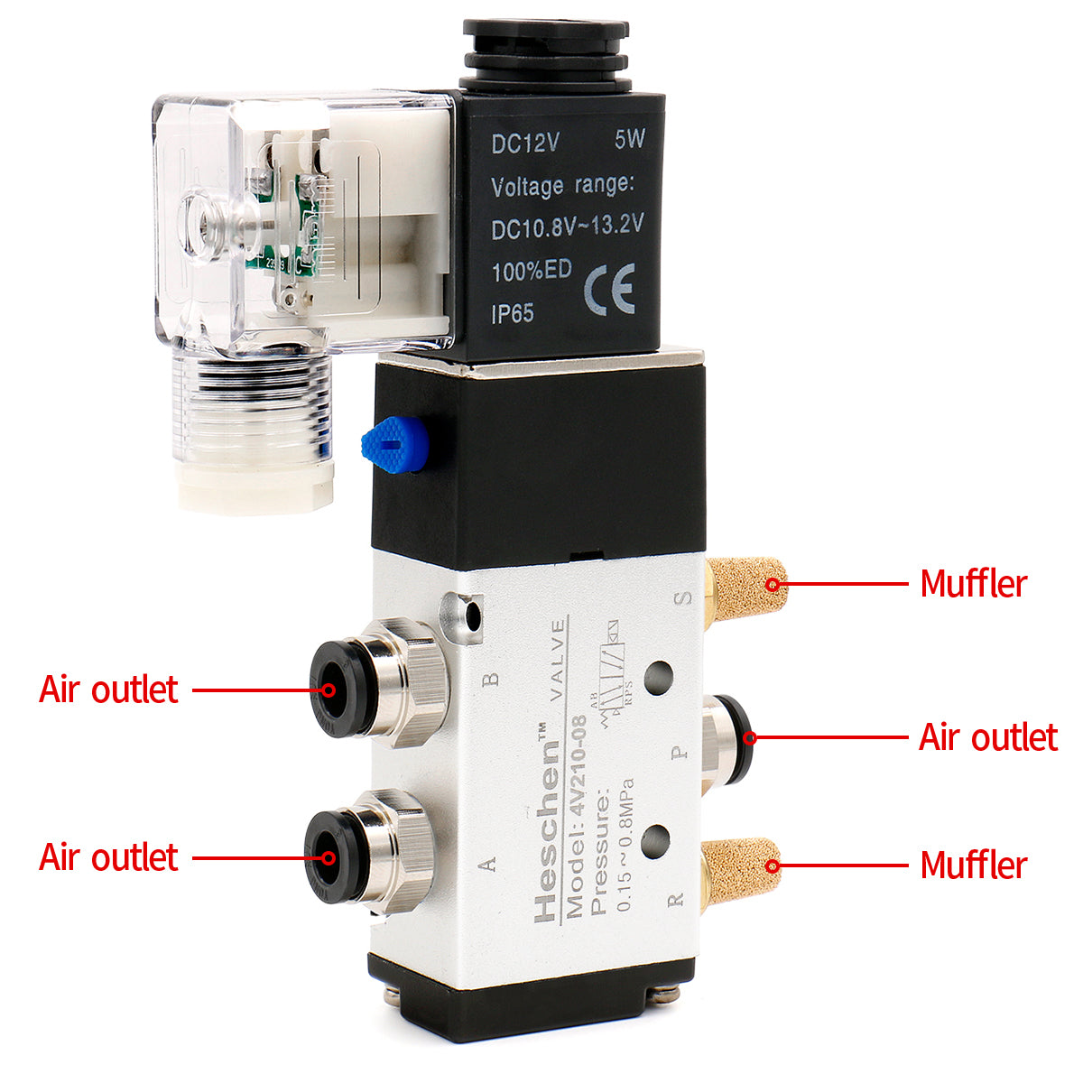 Heschen Electrical Pneumatic Solenoid Valve 4V210-08 PT1/4 5 Way 2 Position CE with Fittings and Mufflers