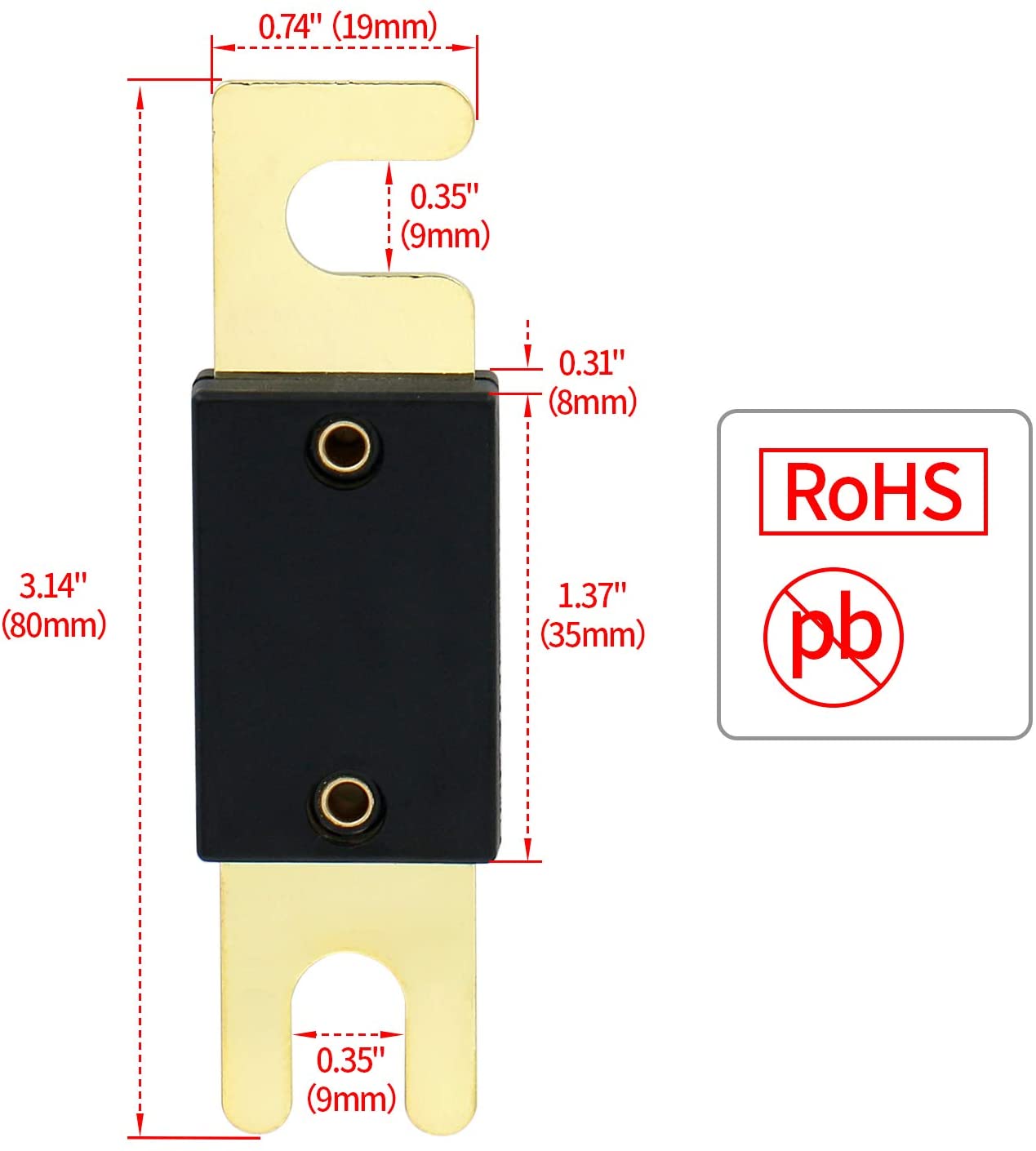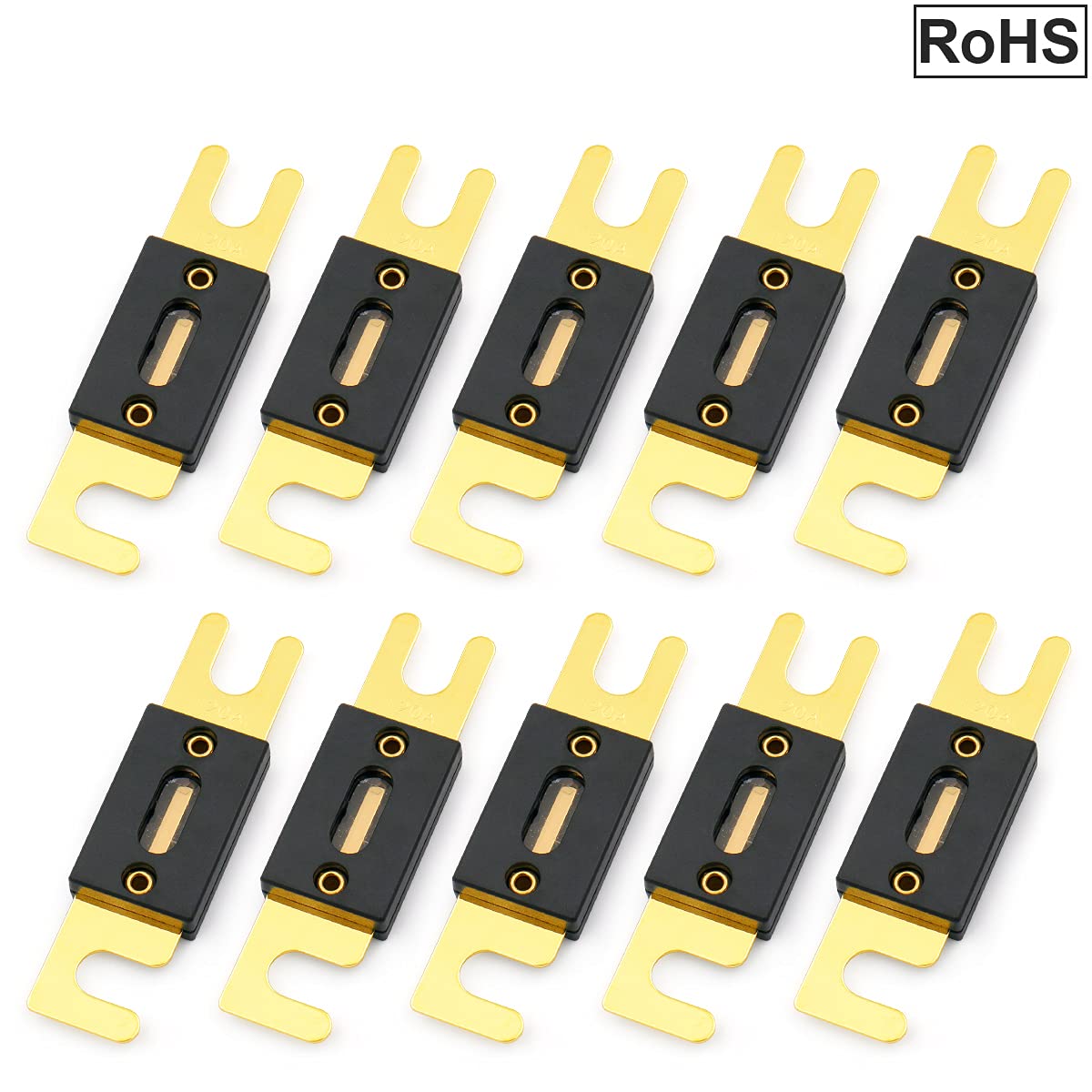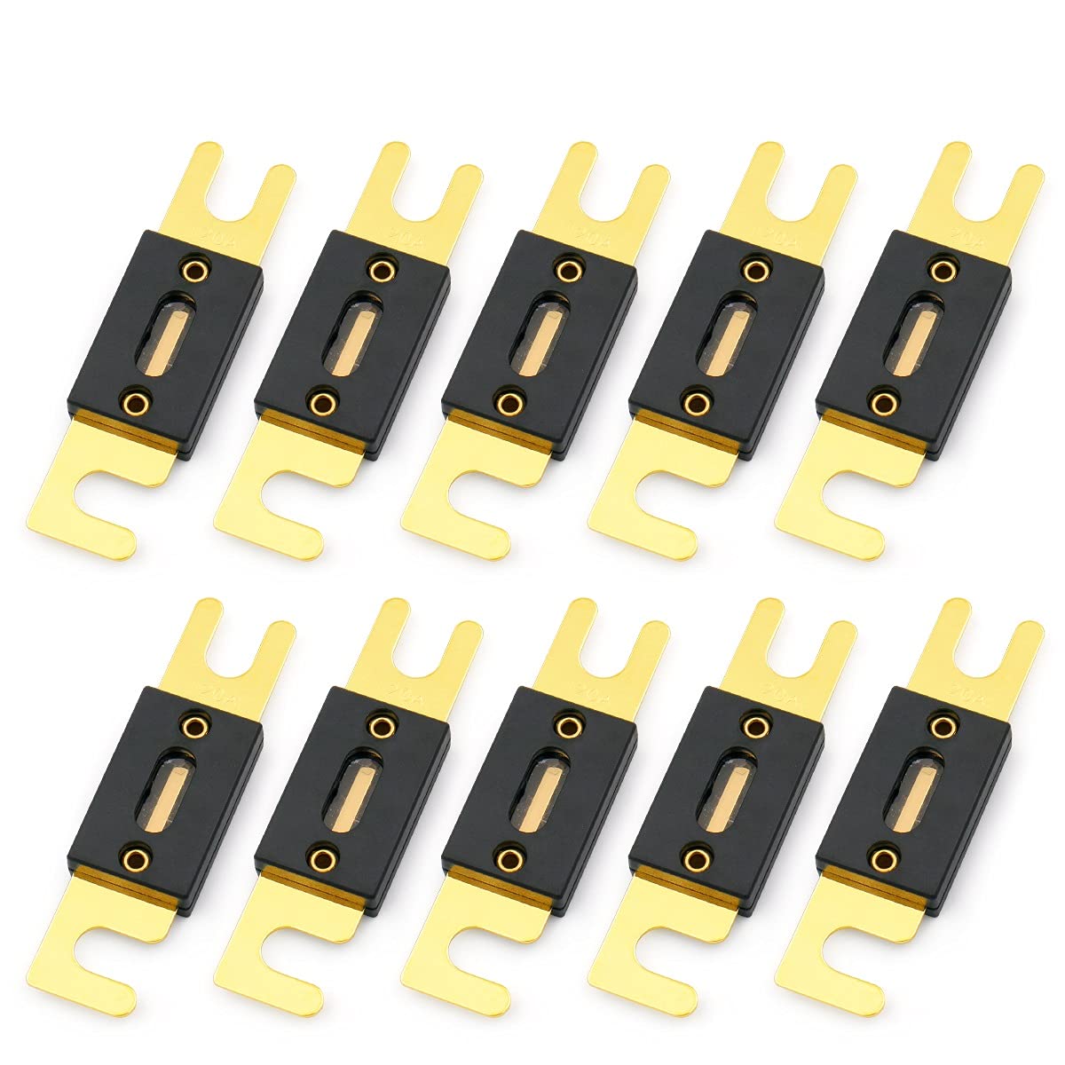 Heschen ANL Fuse ANL Series 30/40/50/60/70/80/100/120/150/180/200/250/300/350/400/450/500Amp for Car Vehicles Audio System Sheet Gold Tone & Black 10 Pack