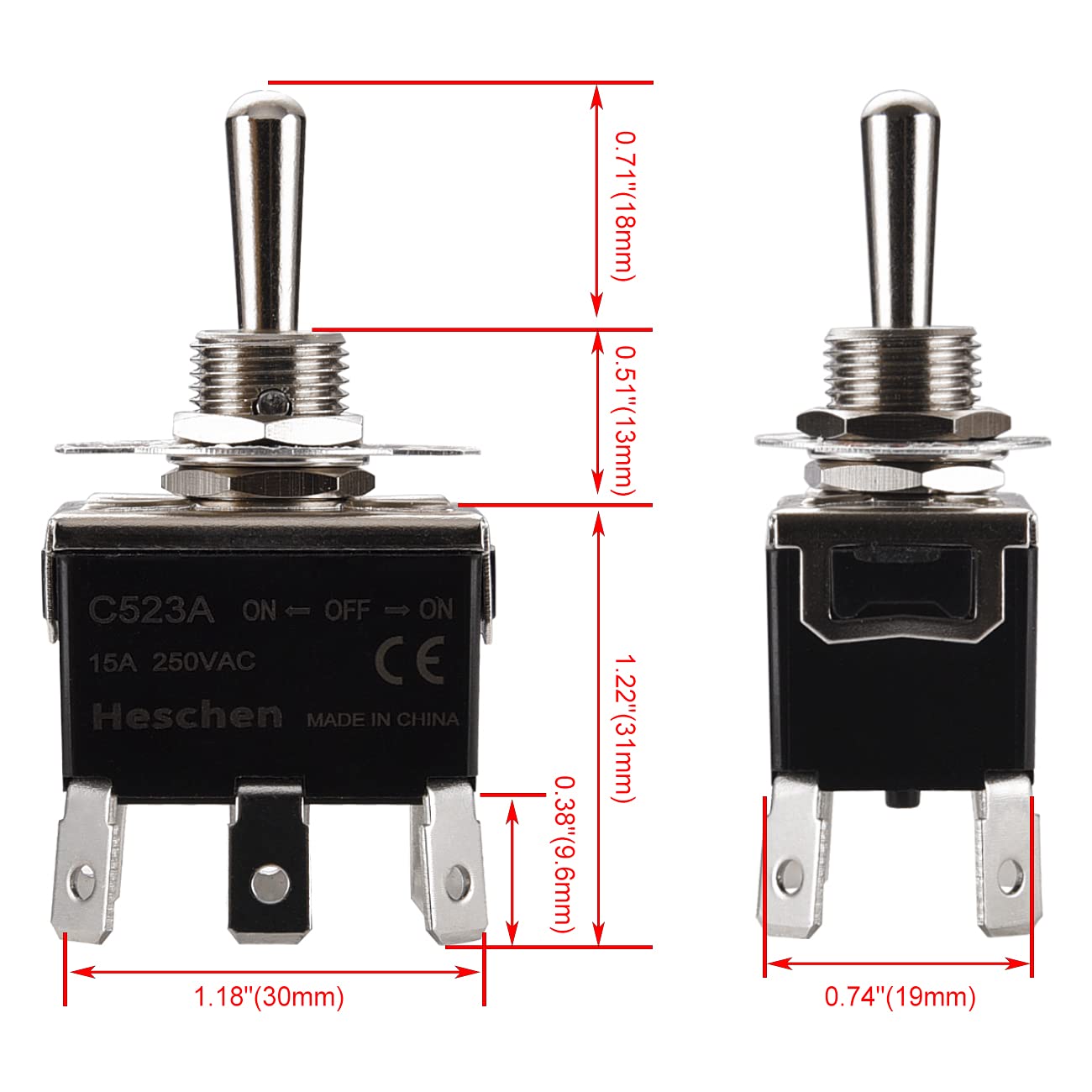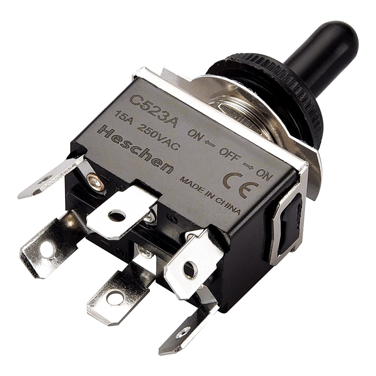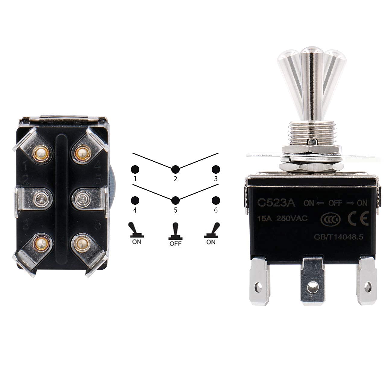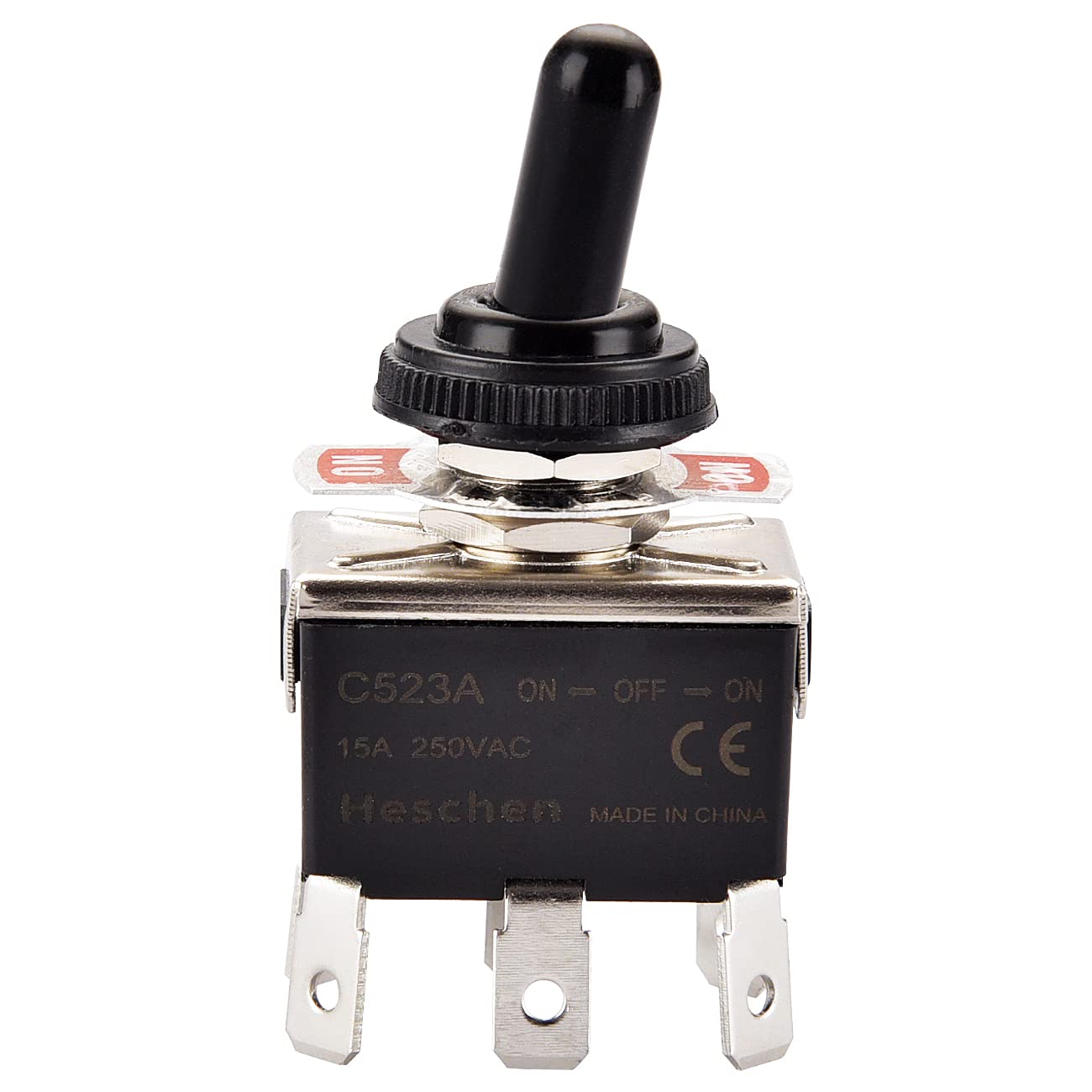 Heschen Metal Toggle Switch DPDT Maintained ON/OFF/ON 3 Position 15A 250VAC 6 tab Terminal CE with Waterproof Cap C523A Pack of 2