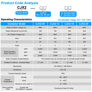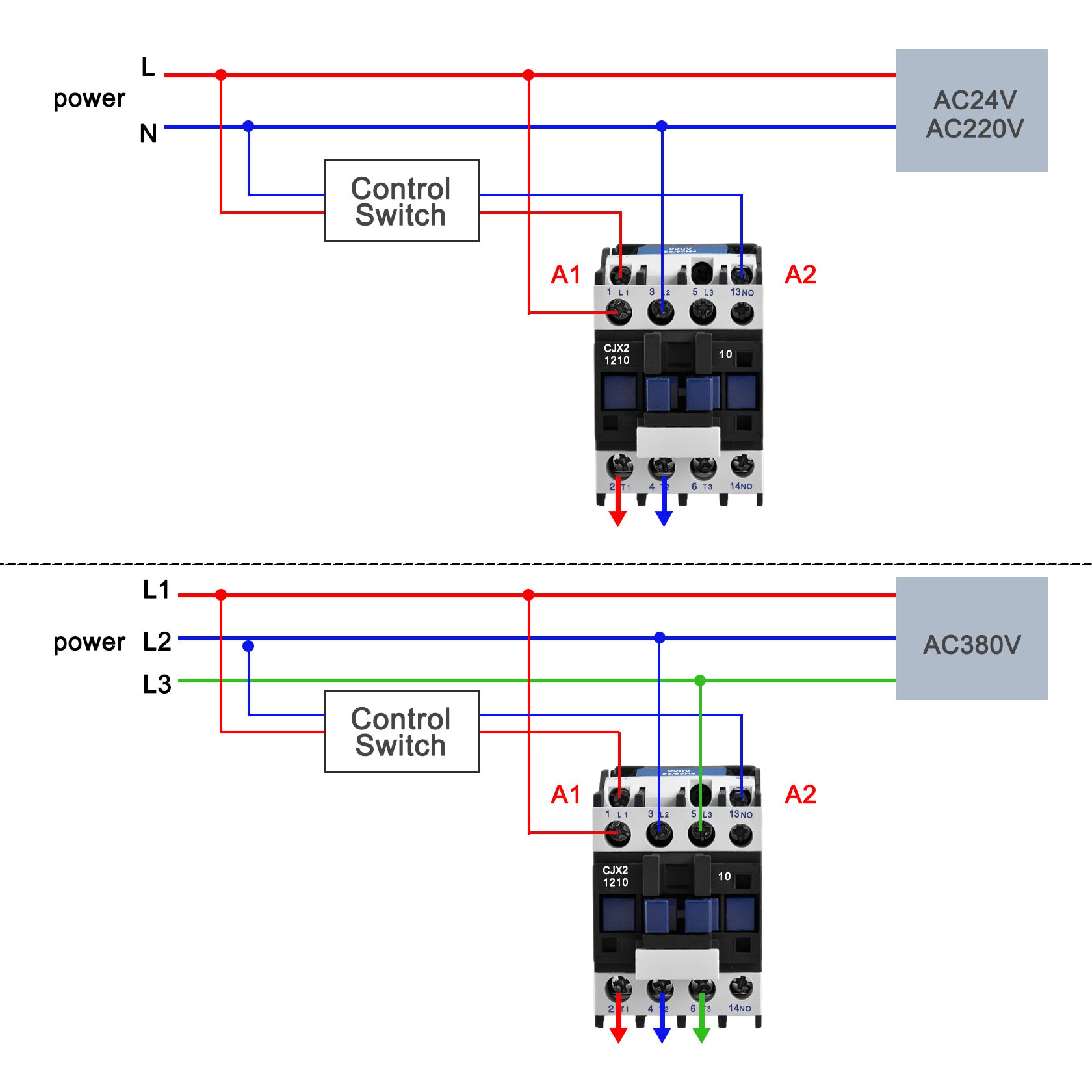 Heschen AC Contactor CJX2-1210 24V/220V 50/60Hz Coil 3P 3 Pole Normally Open Ie 12A Ue 380V