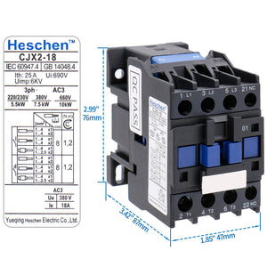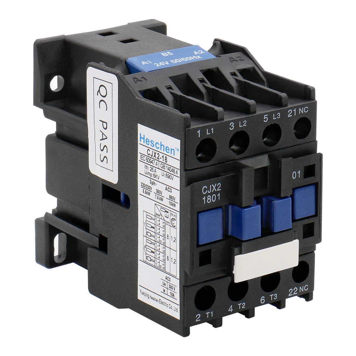Heschen AC Contactor CJX2-1801 24V 50/60Hz Coil 3P 3 Pole Normally Closed Ie 18A Ue 380V