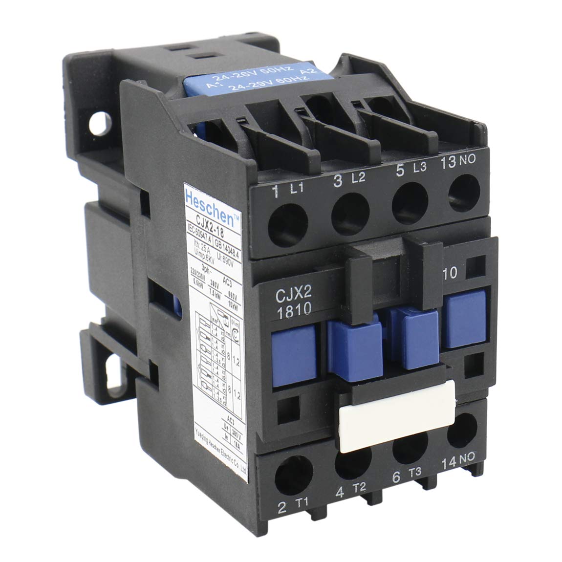 Heschen AC Contactor CJX2-1810 24V 50/60Hz Coil 3P 3 Pole Normally Open Ie 18A Ue 380V