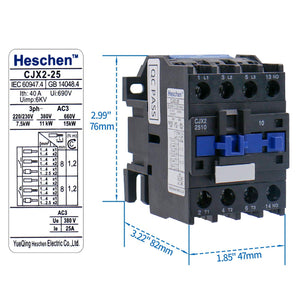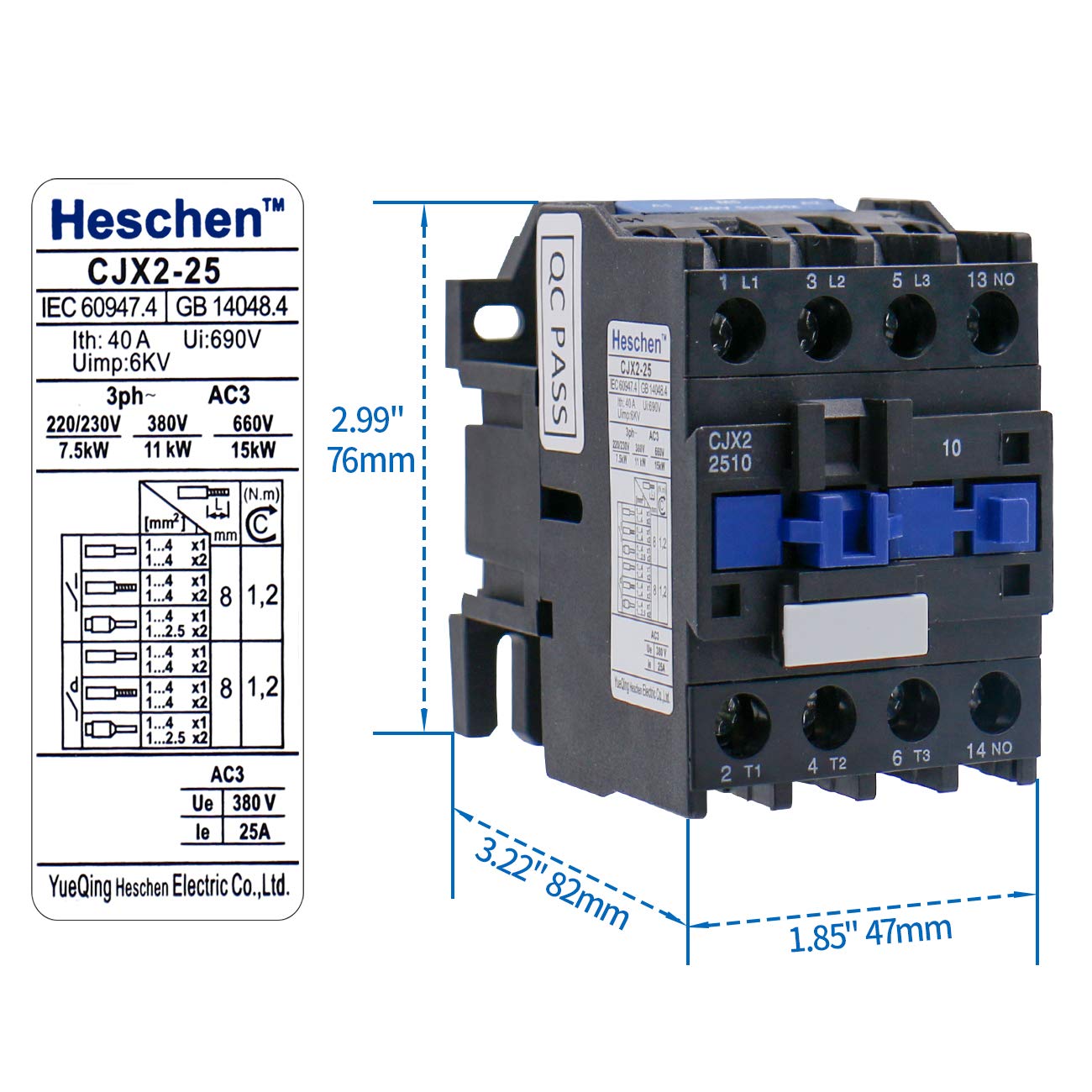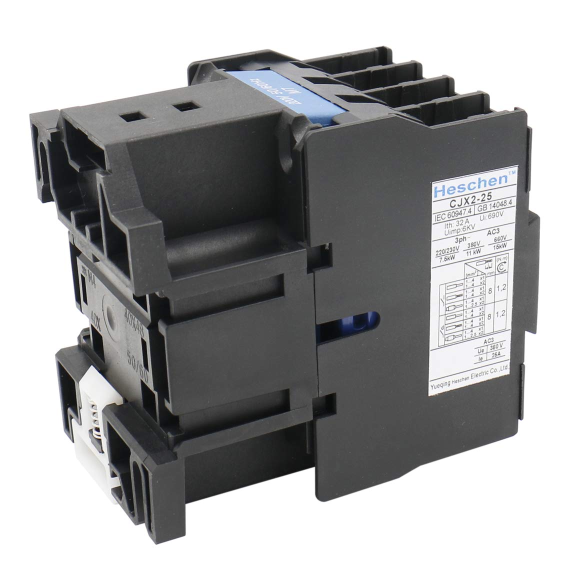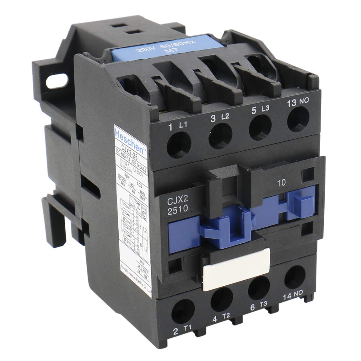 Heschen AC Contactor CJX2-2510 220-240V 50/60Hz Coil 3P 3 Pole Normally Open Ie 25A Ue 380V