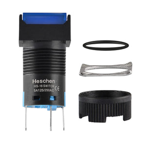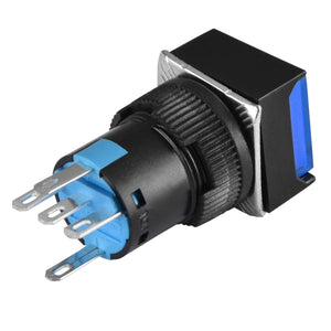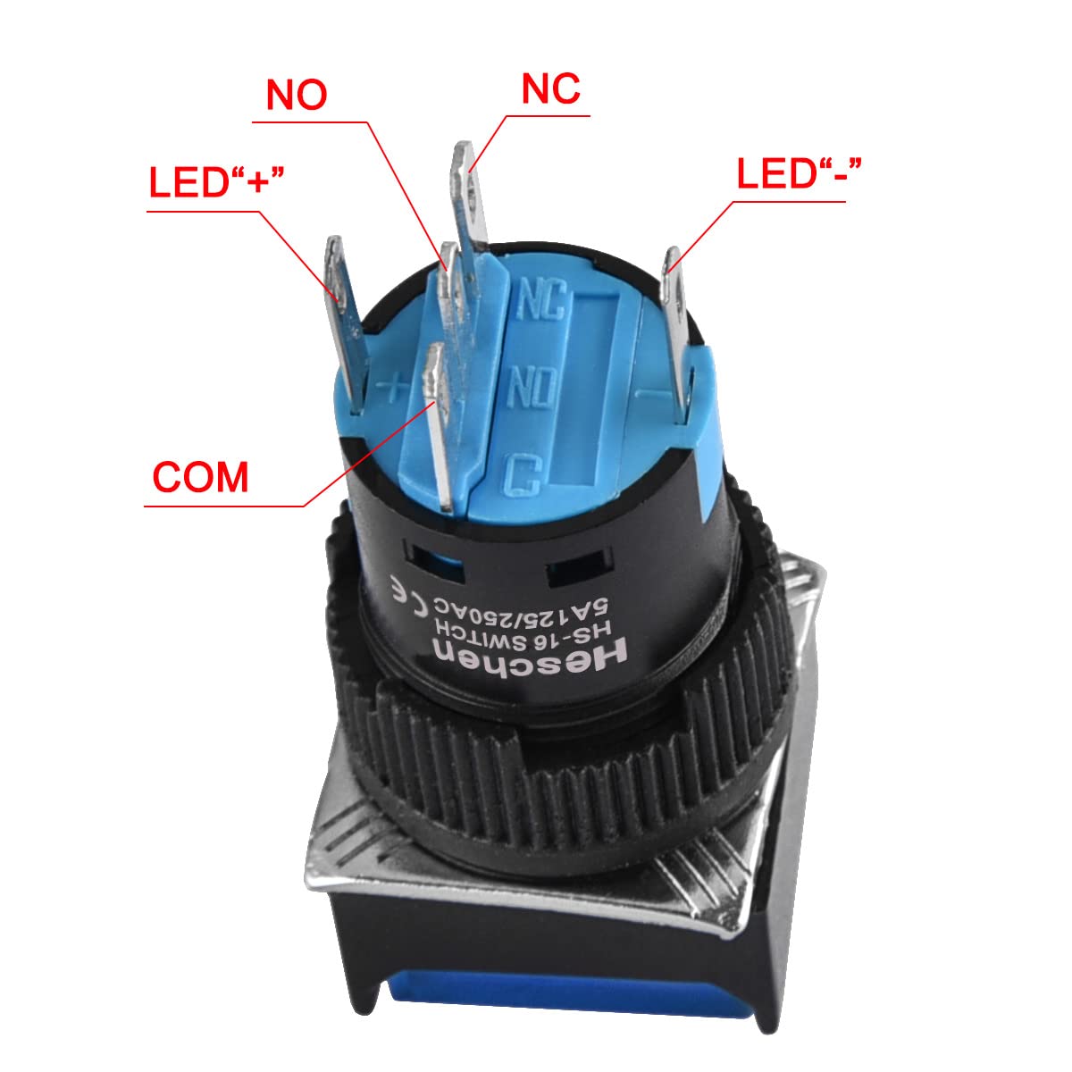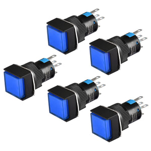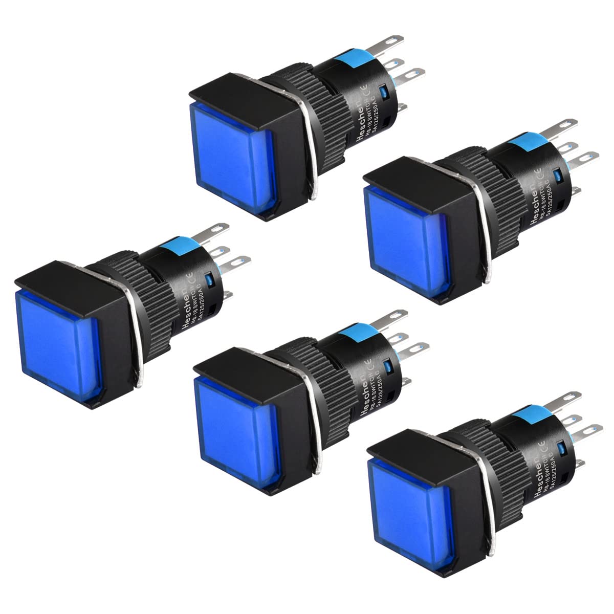Heschen 16mm Square Momentary Push Button Switch 1NO 1NC 12V/24V/110V/220V Blue LED Lamp 5 Pack