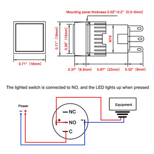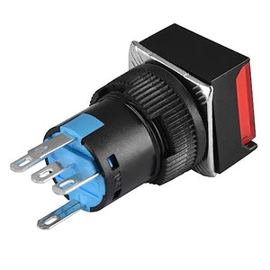 Heschen 16mm Square Latching Push Button Switch 1NO 1NC 12V/24V/110V/220V Red LED Lamp 5 Pack