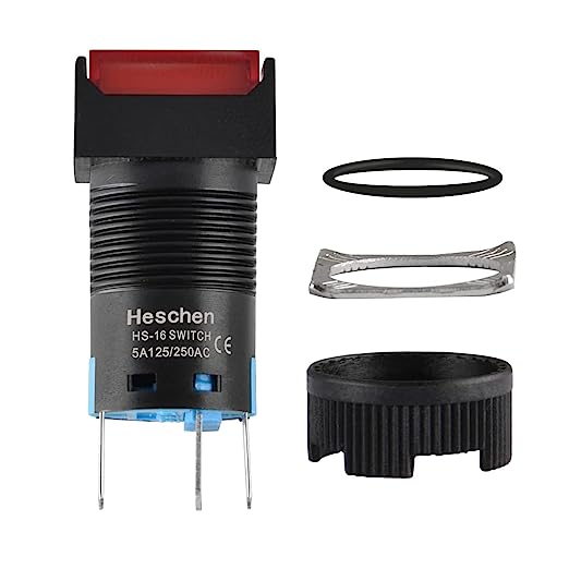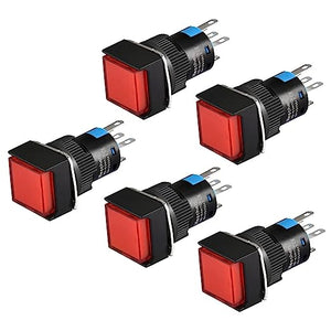 Heschen 16mm Square Momentary Push Button Switch 1NO 1NC 12V/24V/110V/220V Red LED Lamp 5 Pack