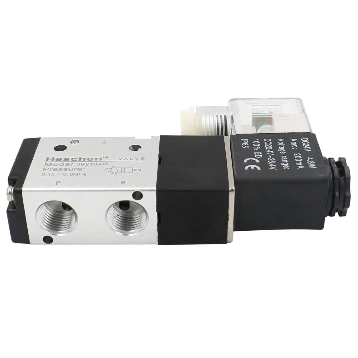 Heschen Electrical Pneumatic Solenoid Valve 3V210-08 12 VDC/24 VDC/110 VAC/220 VAC PT1/4 3/2 Way CE