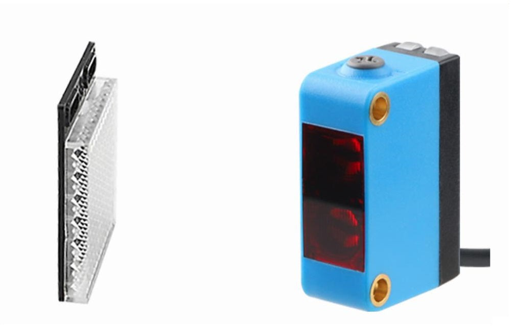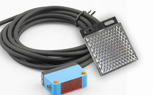 Heschen 4M Compact Mirror-Reflective Photoelectric Sensor BJ-4MJMFSP3, 10-30VDC, 300mA, PNP (NO Or NC Switchable) Sensing Distance 4m with Reflector Panel