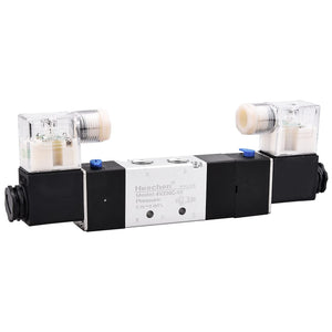 Heschen Electrical Pneumatic Solenoid Valve 4V230C-08, 12V/24V/110V220V PT1/4 5 Way 3 Position Double Coil Pilot-Operated Electric Closed Type CE with Fittings and Muffler