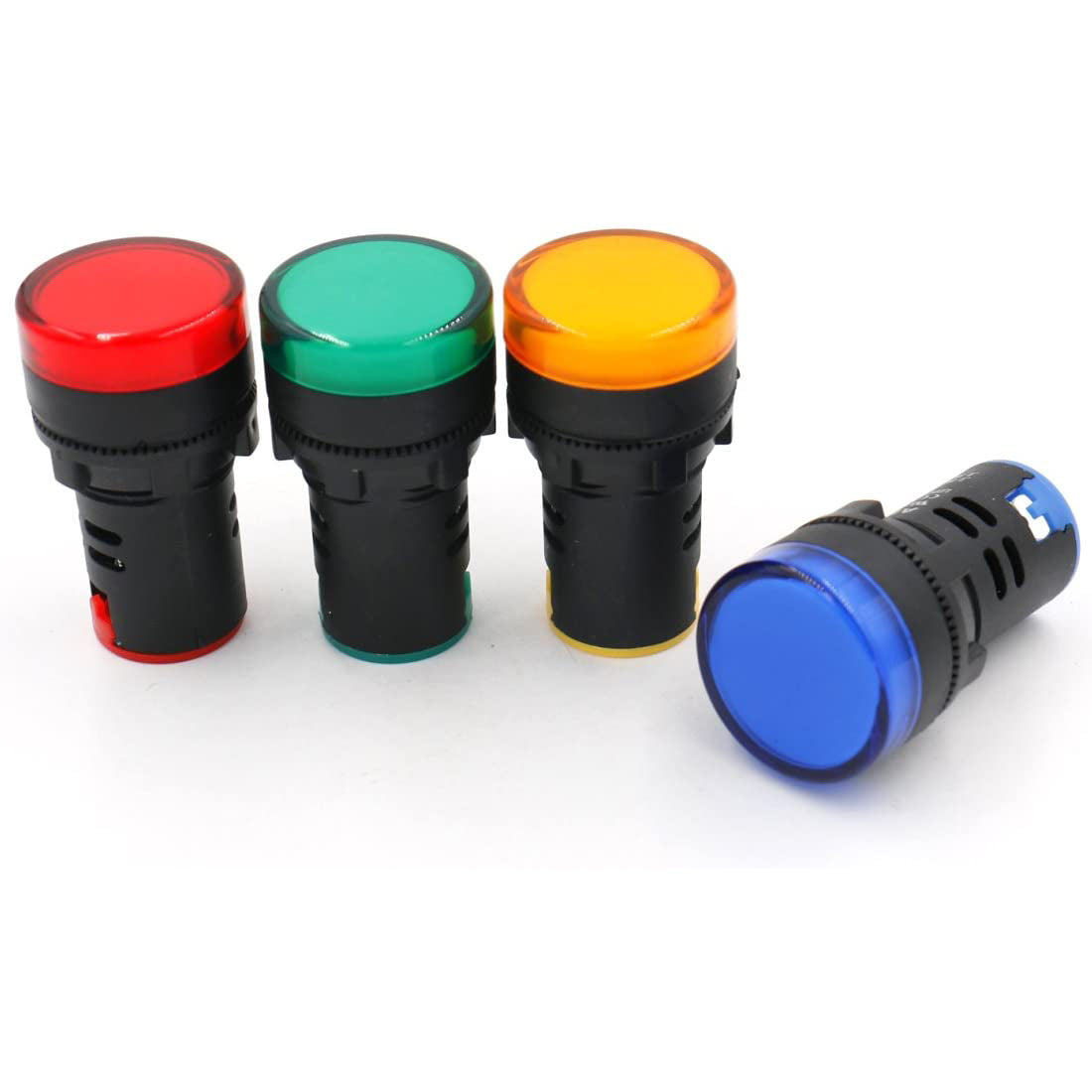 Heschen AD16-22D/S31 DC 12V/24V AC 110V/220V 20mA Energy Saving LED Indicator Light 2 Green 2 Yellow 2 Red 2 Blue (Pack of 8)