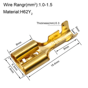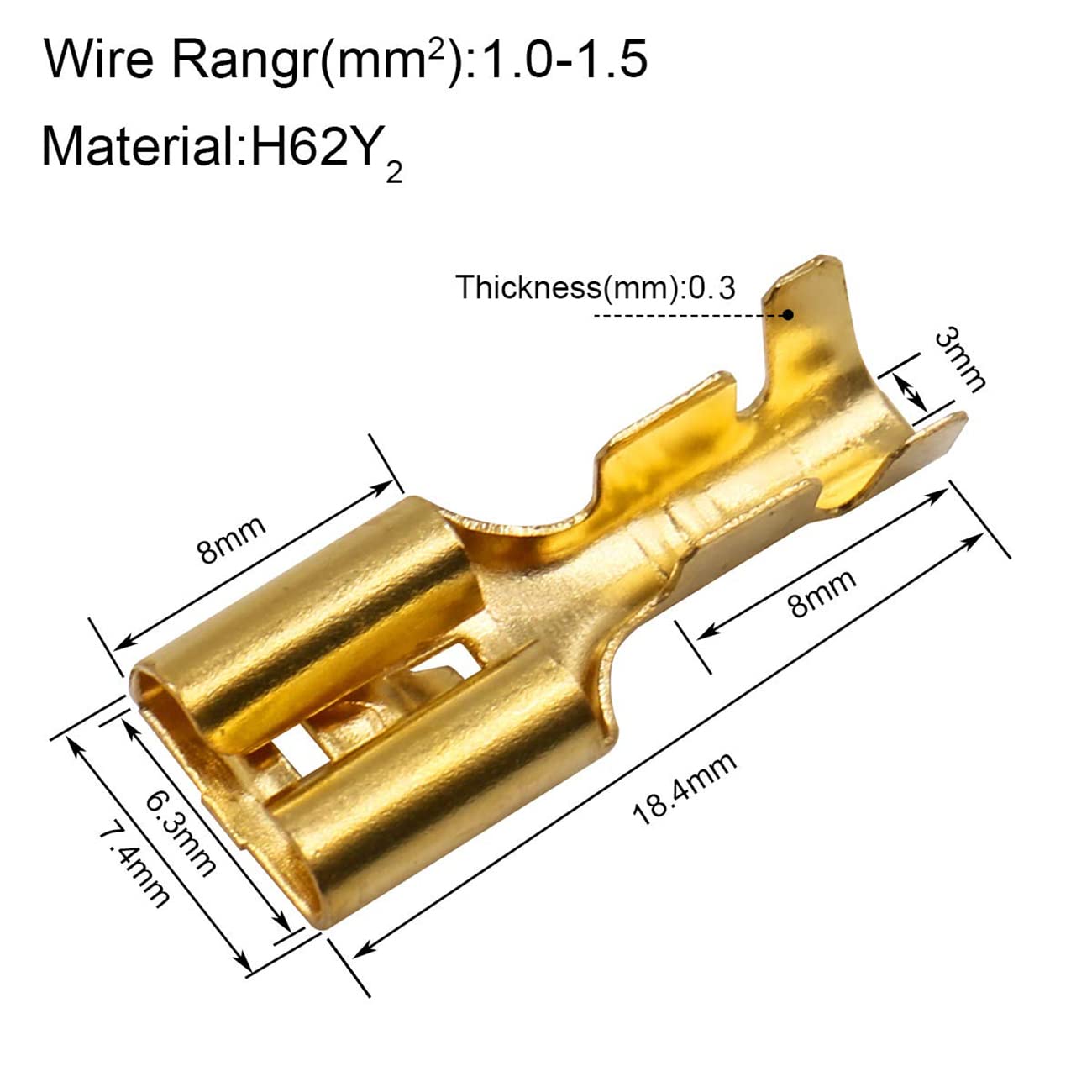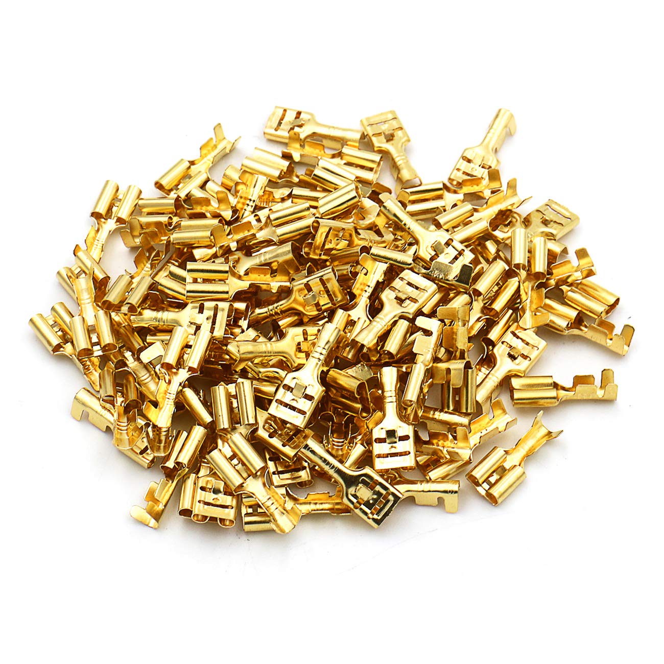 Heschen female spade quick splice crimp terminals 6.3mm crimp connector non insulated 100 pcs