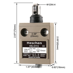 Heschen Limit Switch HS-3113(TZ-3113) Cross Roller Plunger Sealed Momentary SPDT 1NO 1NC IP67 Waterproof
