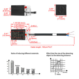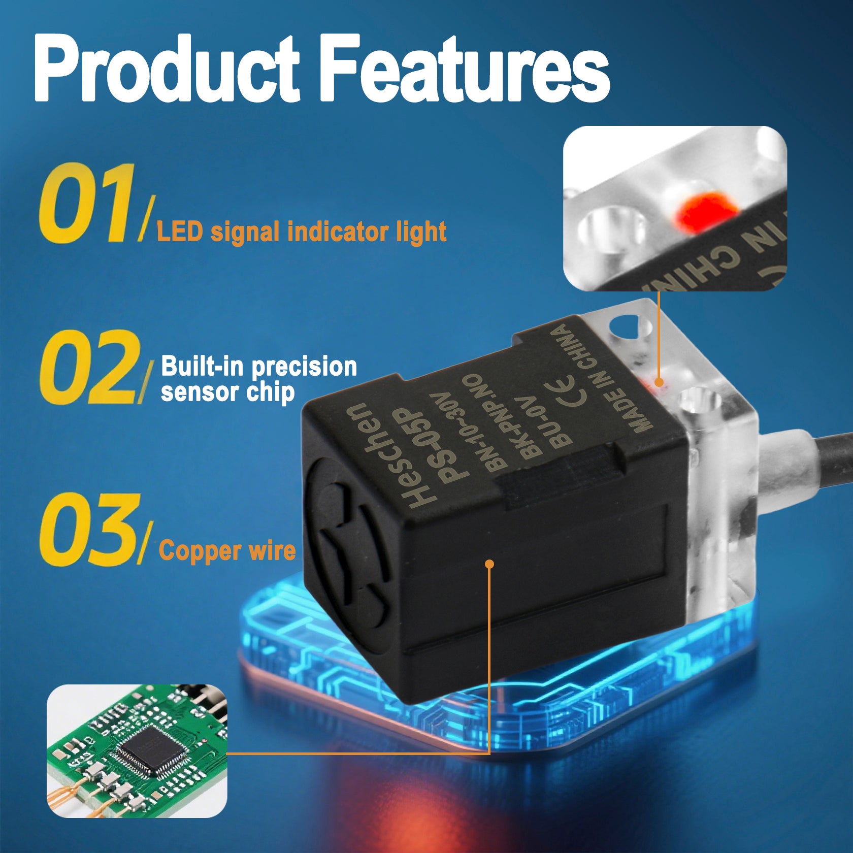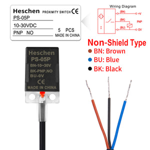 Heschen Inductive Proximity Switch PS-05P, 10-30V 200mA, PNP NO, Sensor Distance 5mm, CE