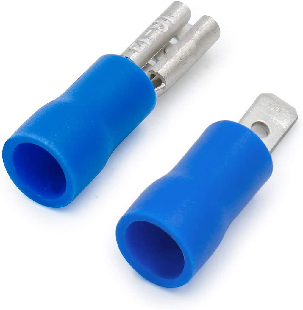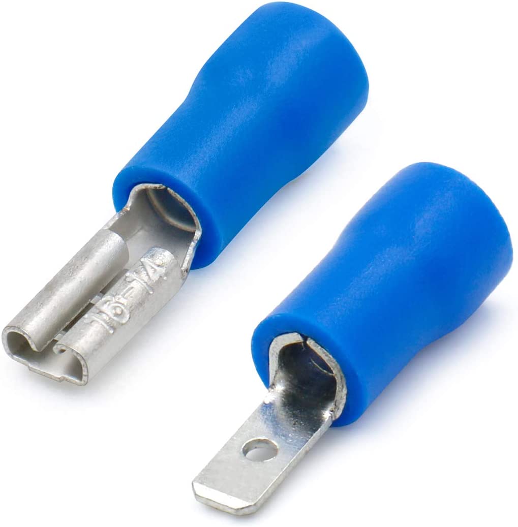 Heschen Male/Female Quick Disconnects Vinyl Insulated 2.8 x 0.5 mm Cable Terminal for 1.5-2.5mm² (16-14 AWG) Blue MDD+FDD2-110 Pack of 200