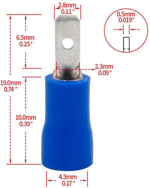 - Male/Female Flat 2.8mm x 0.5mm Electrical Lugs