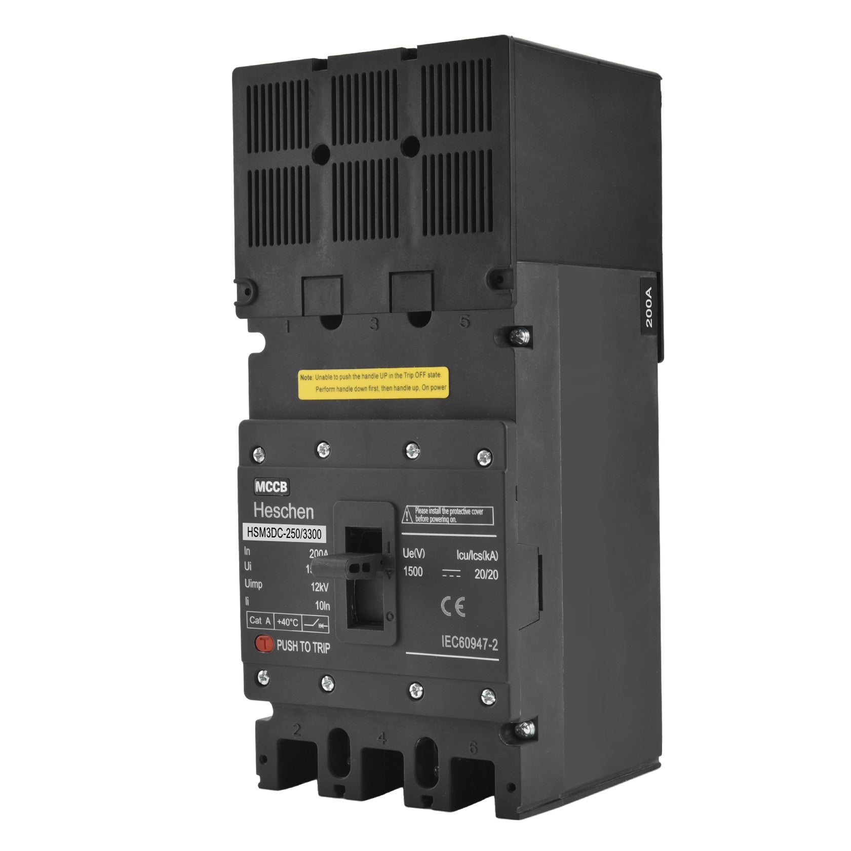 Heschen MCCB Molded Case Circuit Breaker DC,Photovoltaic Circuit Breaker, HSM3DC-250, 2 Poles, DC1500V 125A/140A/160A/180A/200A/250A, With Protective Cover