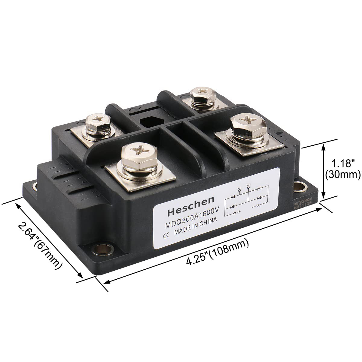 Heschen Bridge Rectifier MDQ-300A Full Wave Diode Module Single Phase 300A 1600V Convert a AC Welder to DC