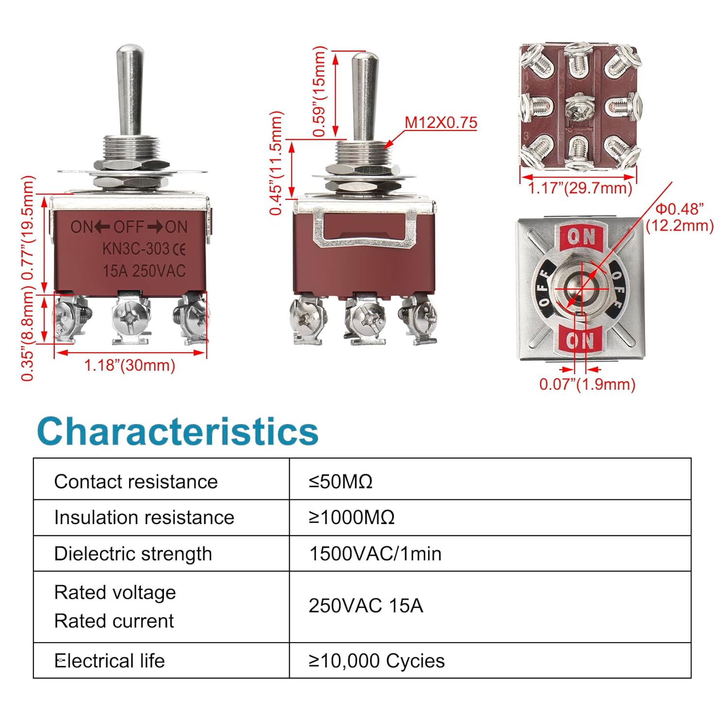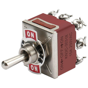 Heschen Metal Toggle Switch, KN3C-303, 3PDT, Maintained, ON/OFF/ON 3 Position, 15A 250VAC, 10A 380VAC, CE