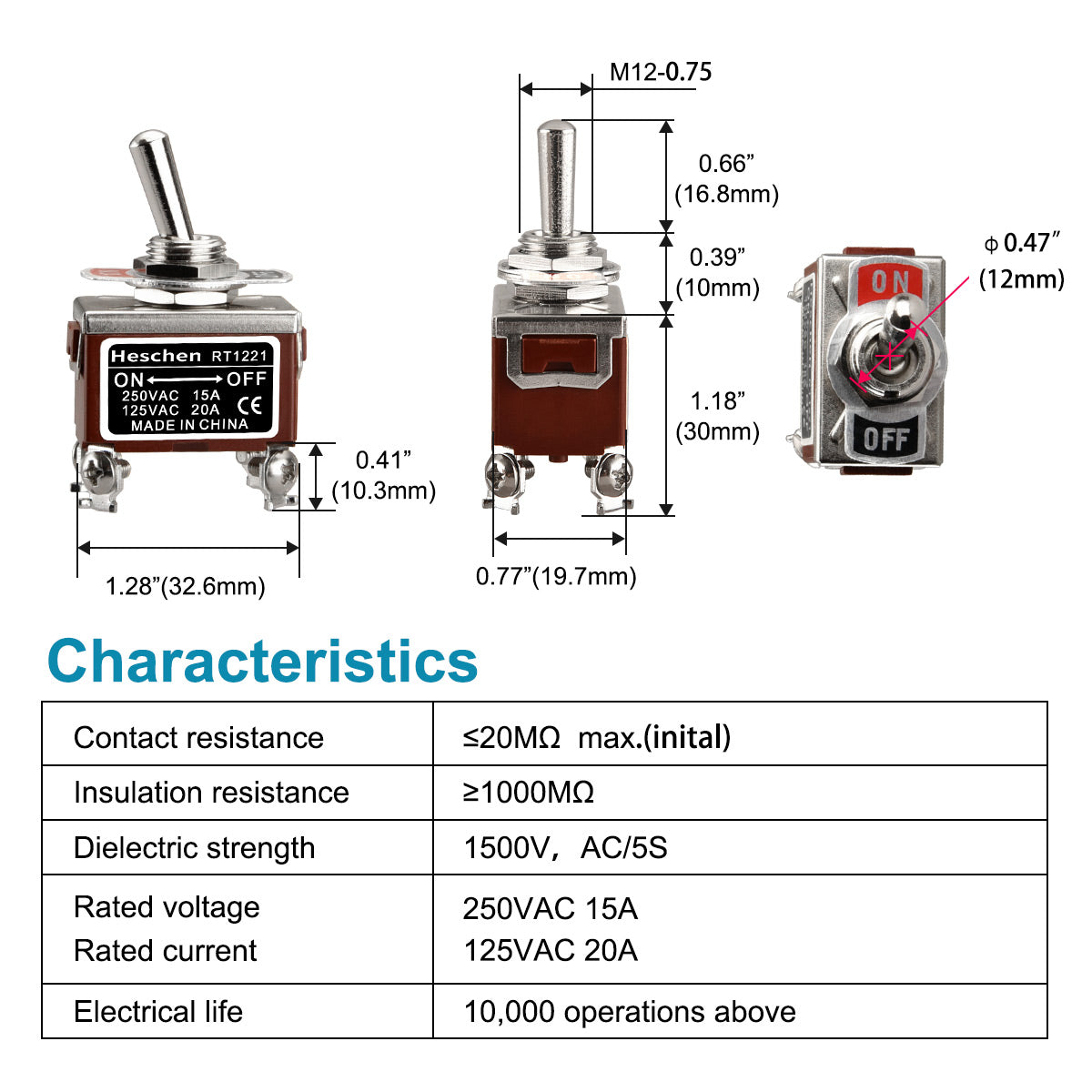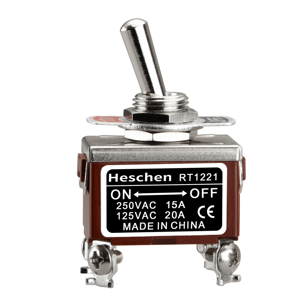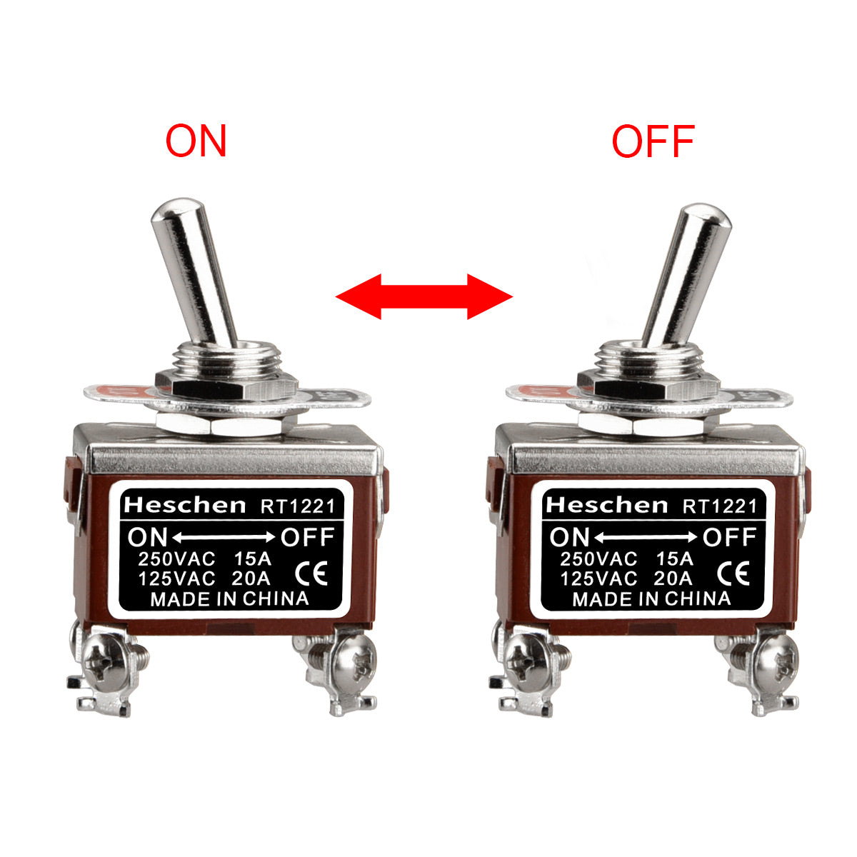 Heschen Metal Toggle Switch, RT1221, DPST, Maintained Type, ON/OFF, 2 Position, 15A 250VAC, with Waterproof Cap 5pcs