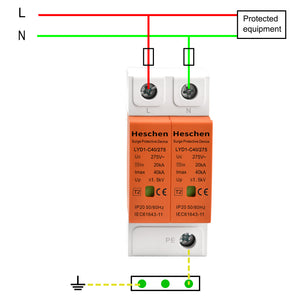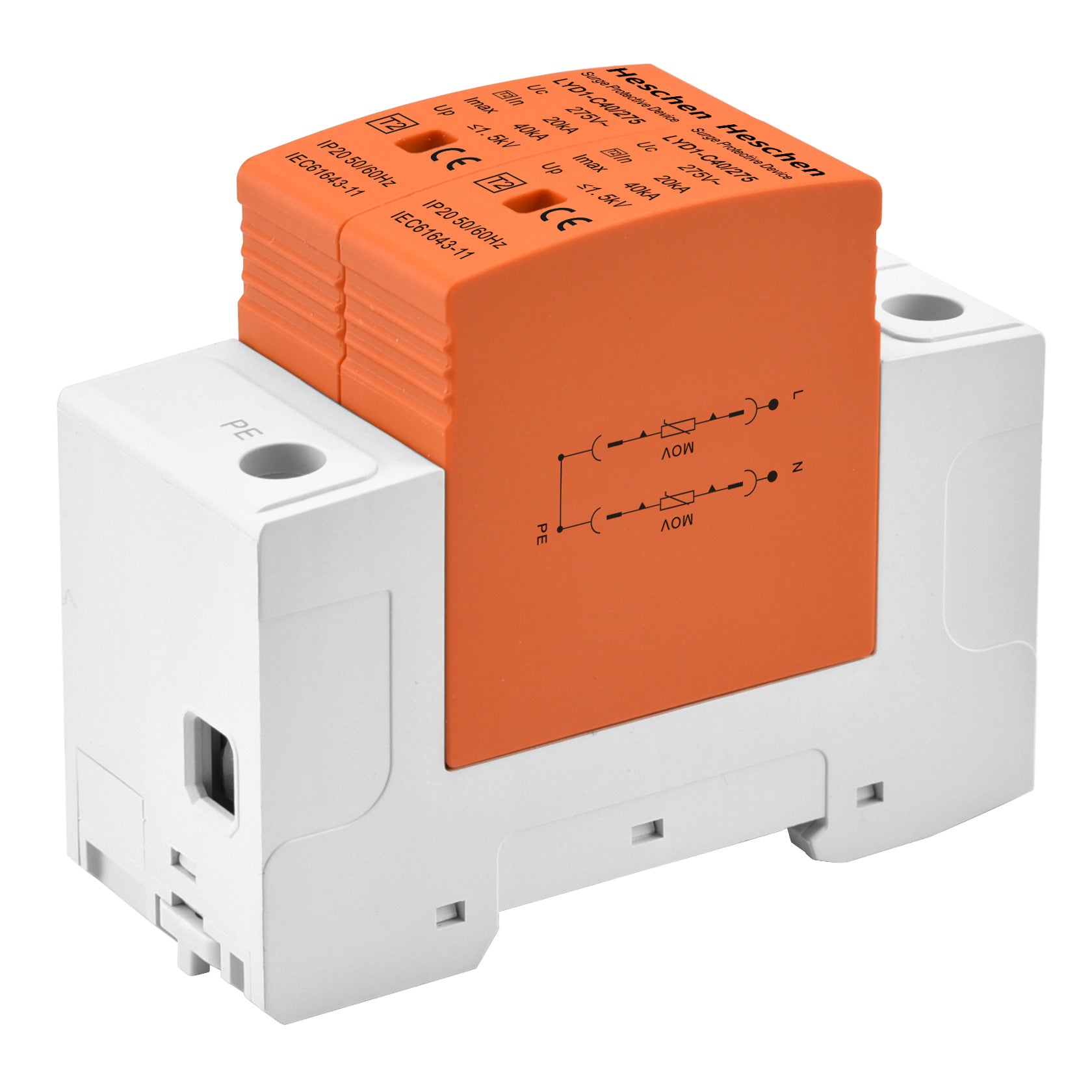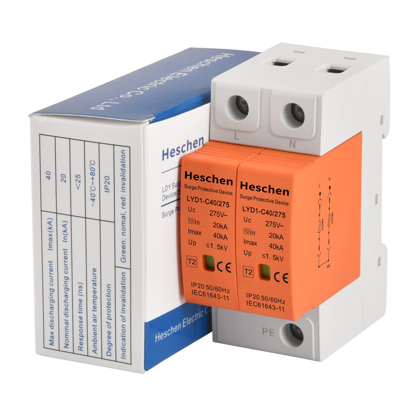 Heschen Surge Protective Device, LYD1-C40/275, 2P 275V 20KA, Fire-Proof, Low-Voltage Arrester, 35mm DIN Rail Mounting