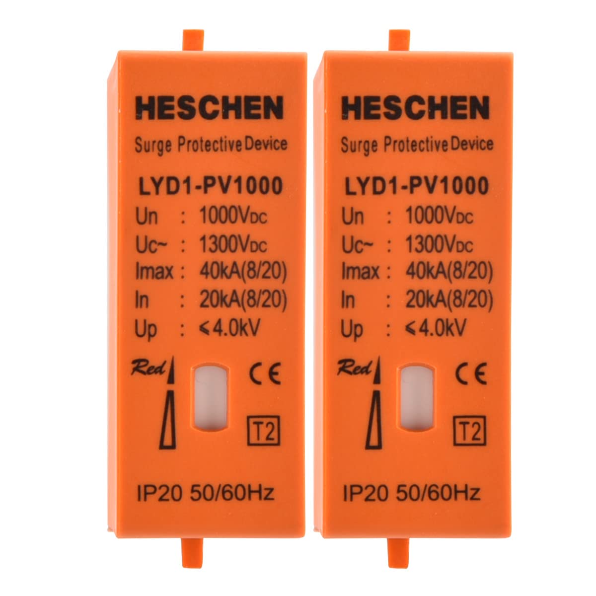 Heschen Surge Protective Device Module, LYD1-PV1000, 1000VDC 20KA, 35mm DIN Rail Mounting, 2PCS