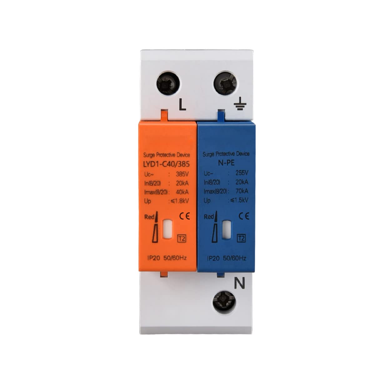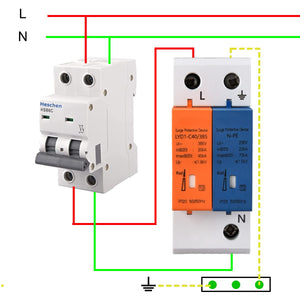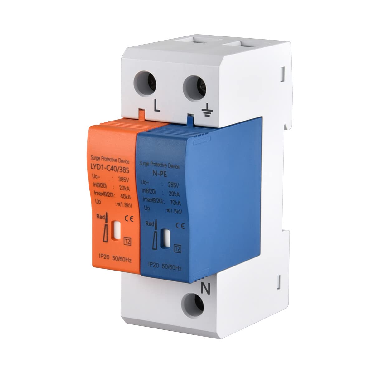 Heschen Surge Protective Device, N-PE, LYD1-C40/385, 2P 20KA, Fire-Proof, Low-Voltage Arrester, 35mm DIN Rail Mounting