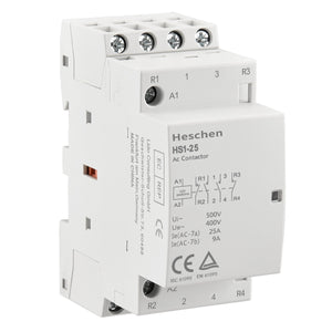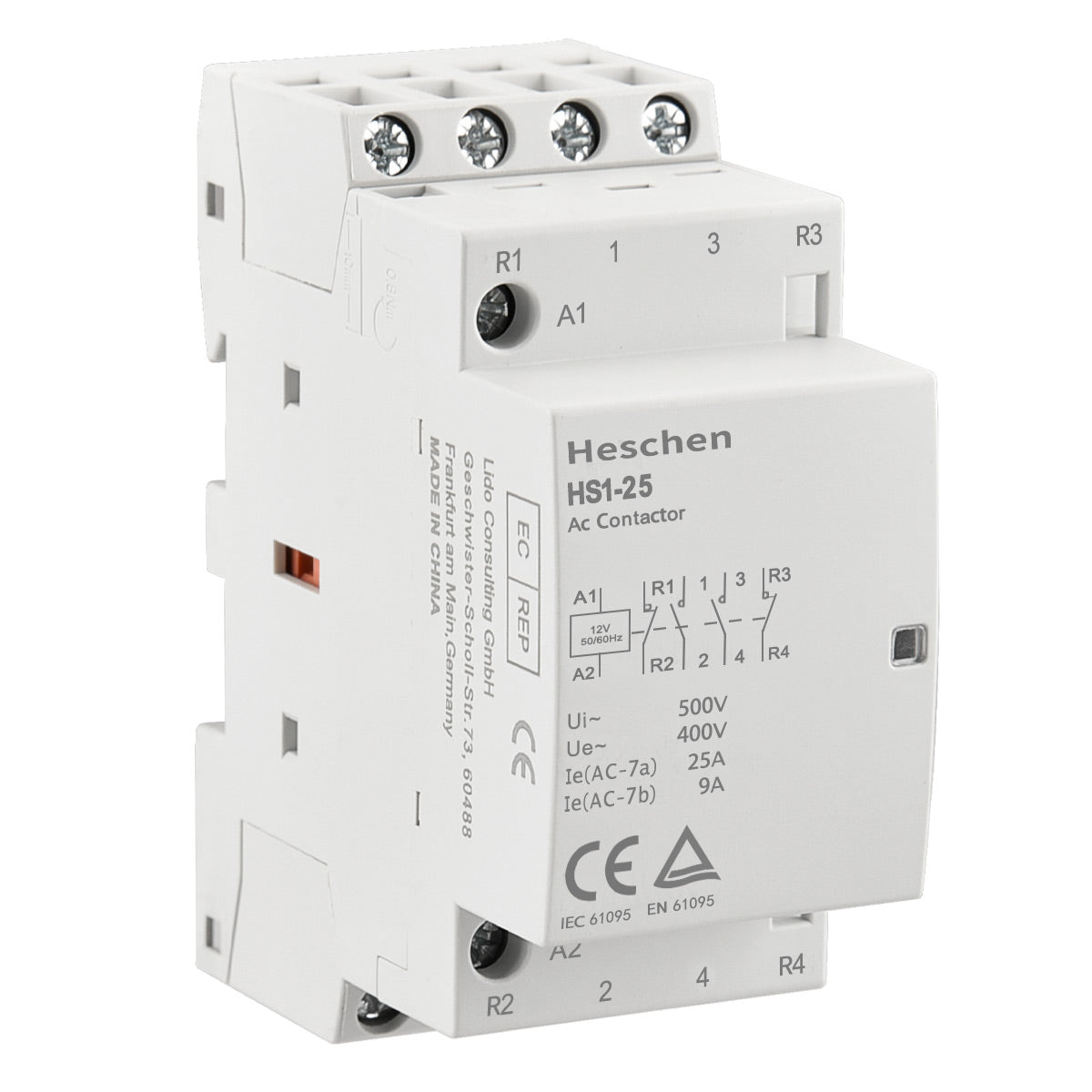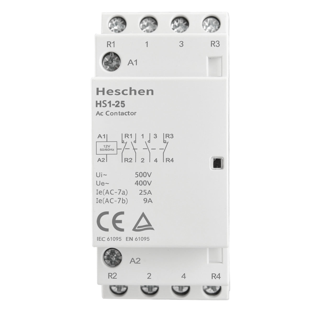 Household AC Contactor HS1-25 Ie 25A 4 Pole 2NO 2NC 12V Coil Voltage 35 mm DIN Rail Mount