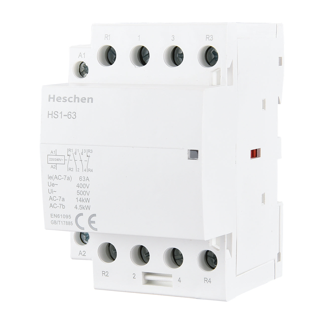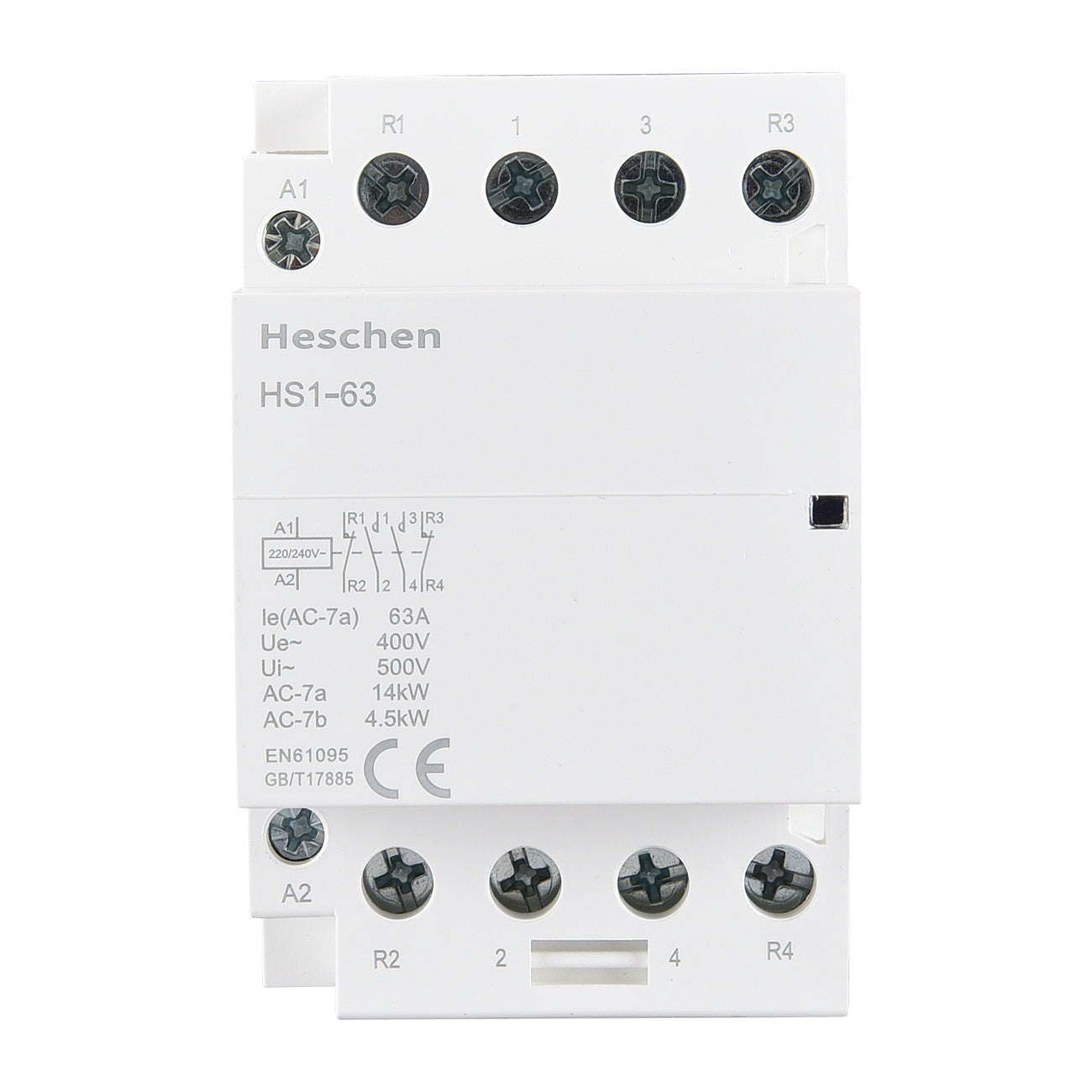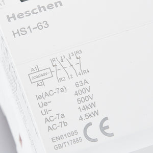 Heschen Household AC Contactor HS1-63 Ie 63A 4 Pole 2NO 2NC Open 220V Coil Voltage 35 mm DIN Rail Mount