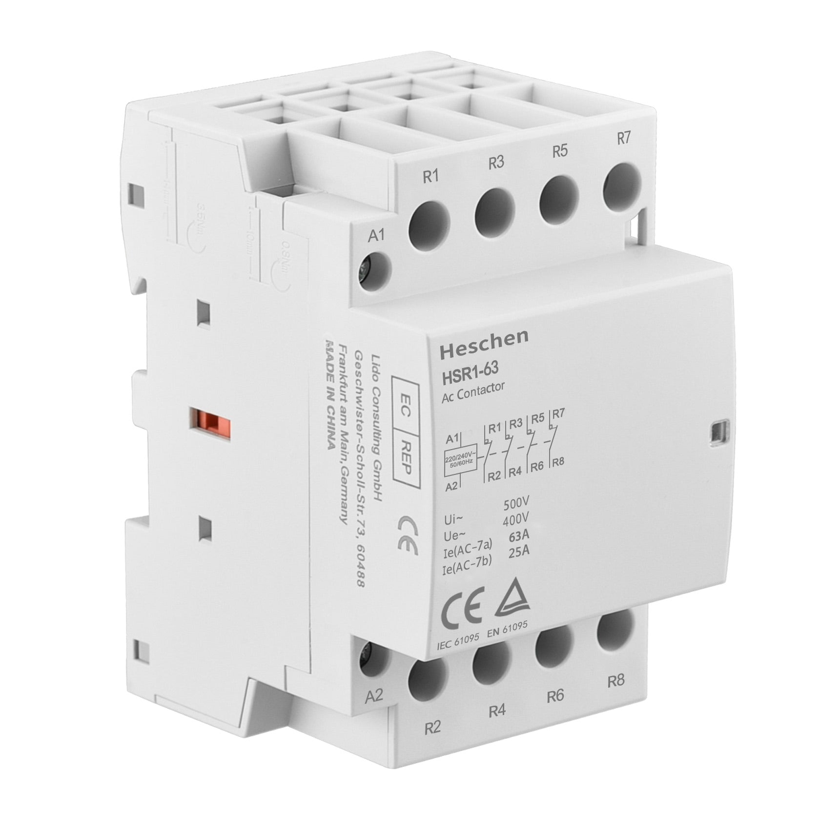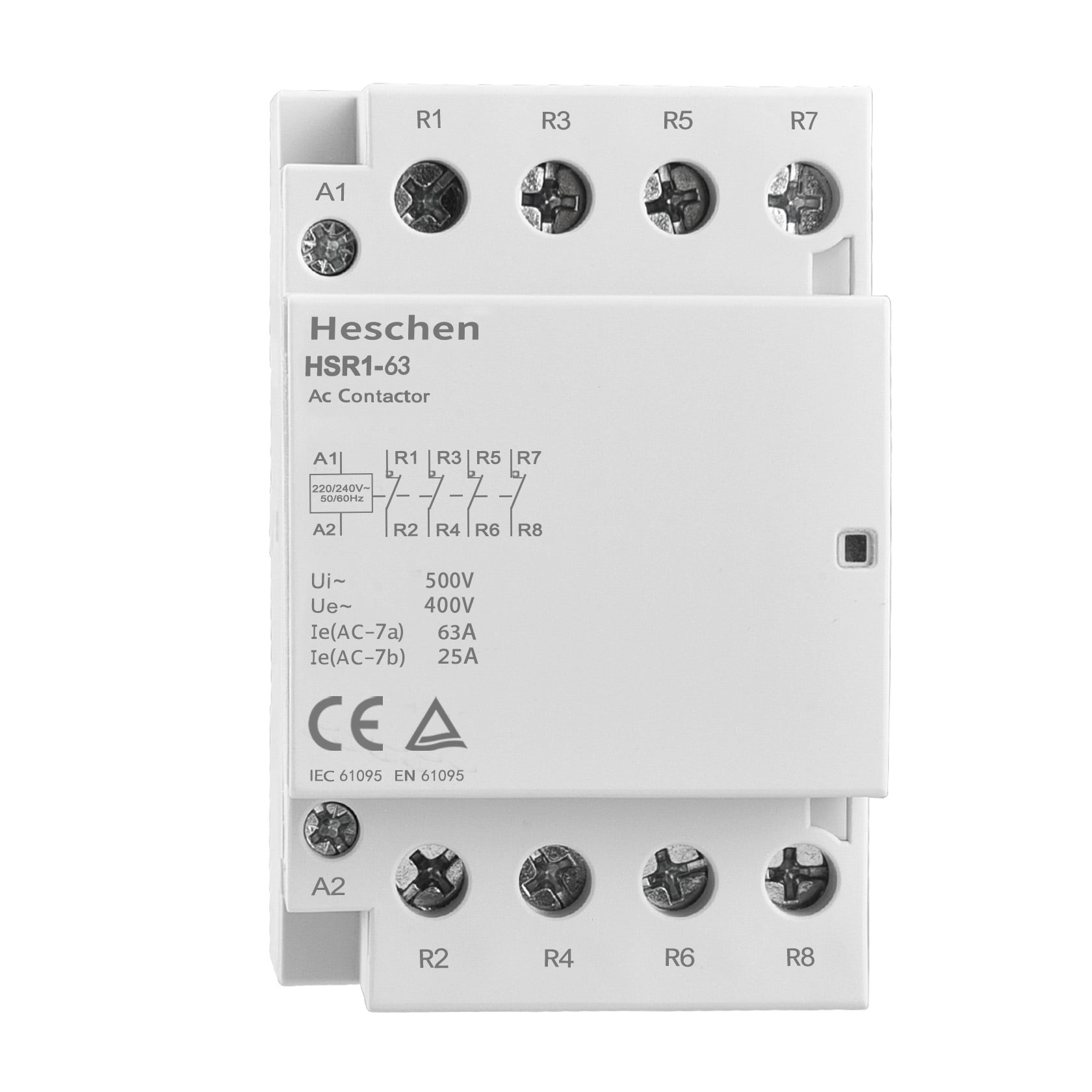 Household AC Contactor HSR1-63 4 Pole Four Normally Closed 220V/240V Coil Voltage 35mm DIN Rail Mount