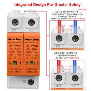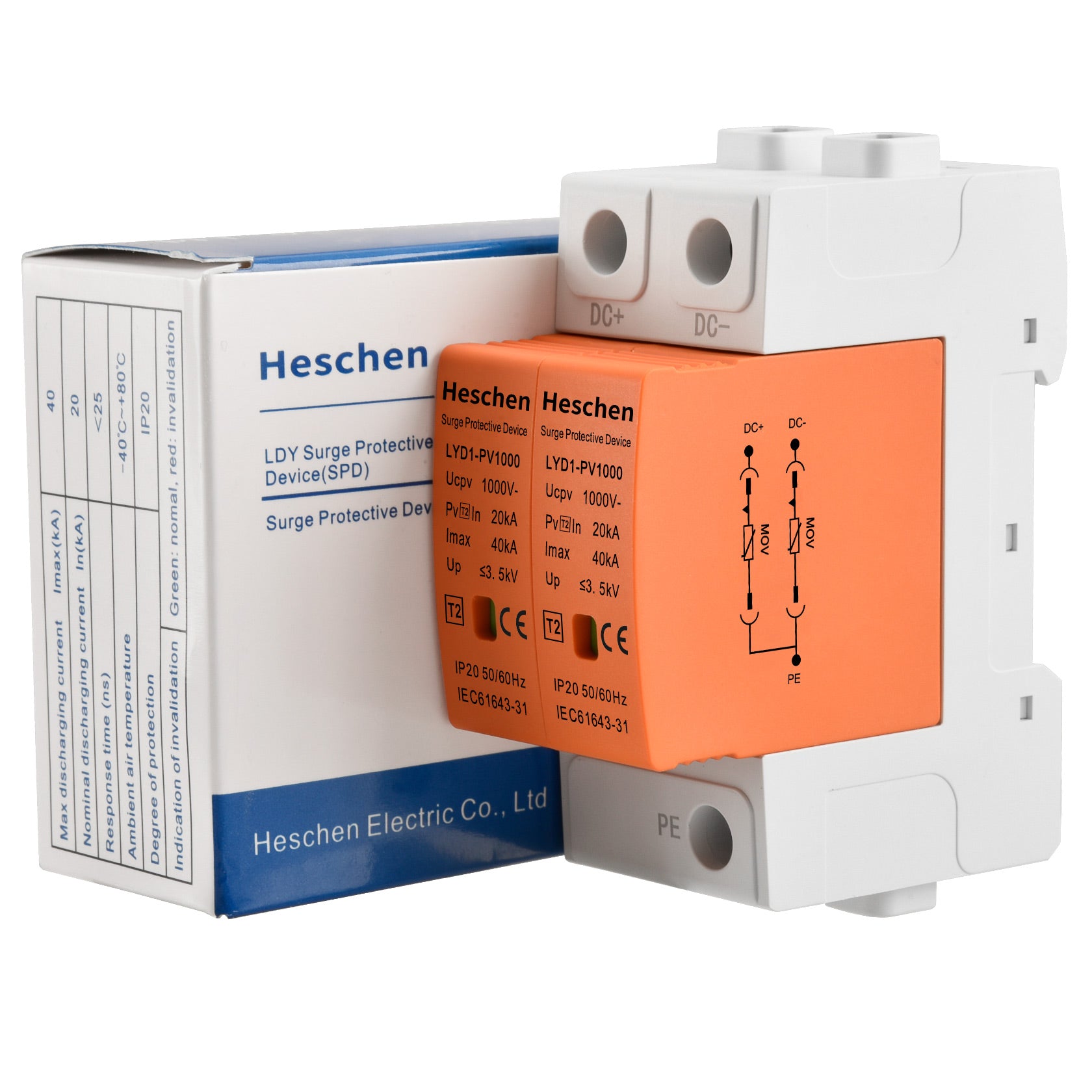 Heschen Surge Protective Device for PV, LYD1-PV1000, 2P 1000VDC 20KA, 35mm DIN Rail Mounting