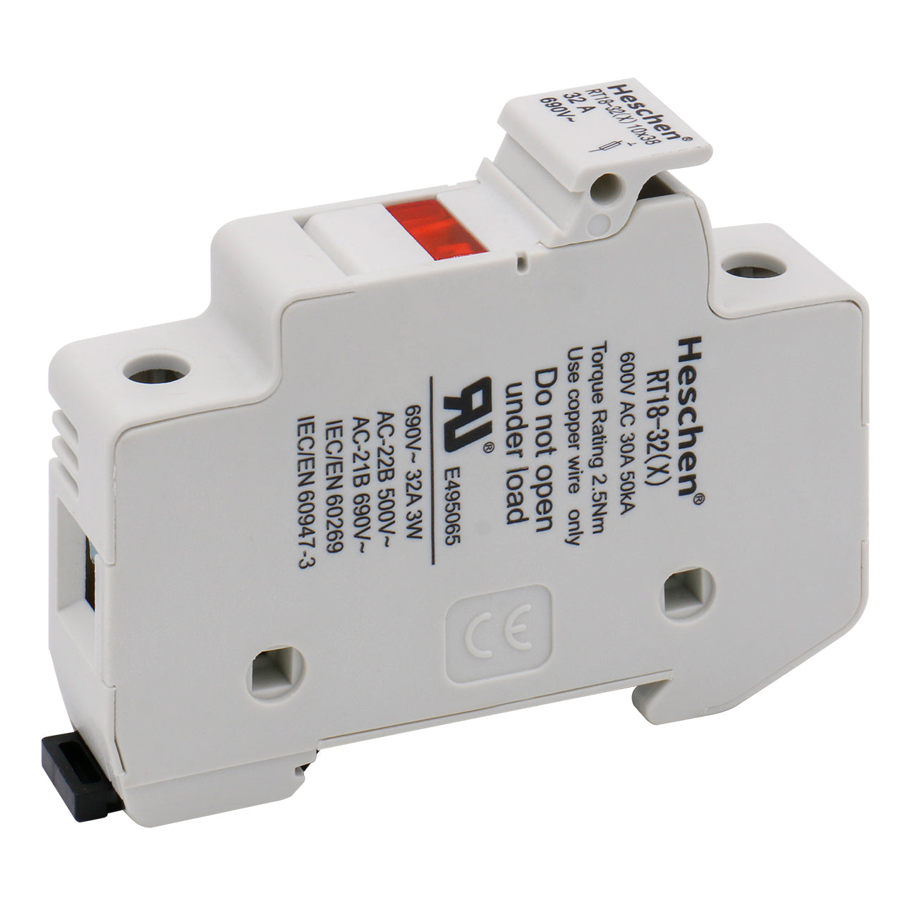 Cylindrical Fuse Holder Base RT18-32(X) 32A AC 690V 1 Pole DIN Rail Mounting for 10 x 38mm Fuse CE UL Listed