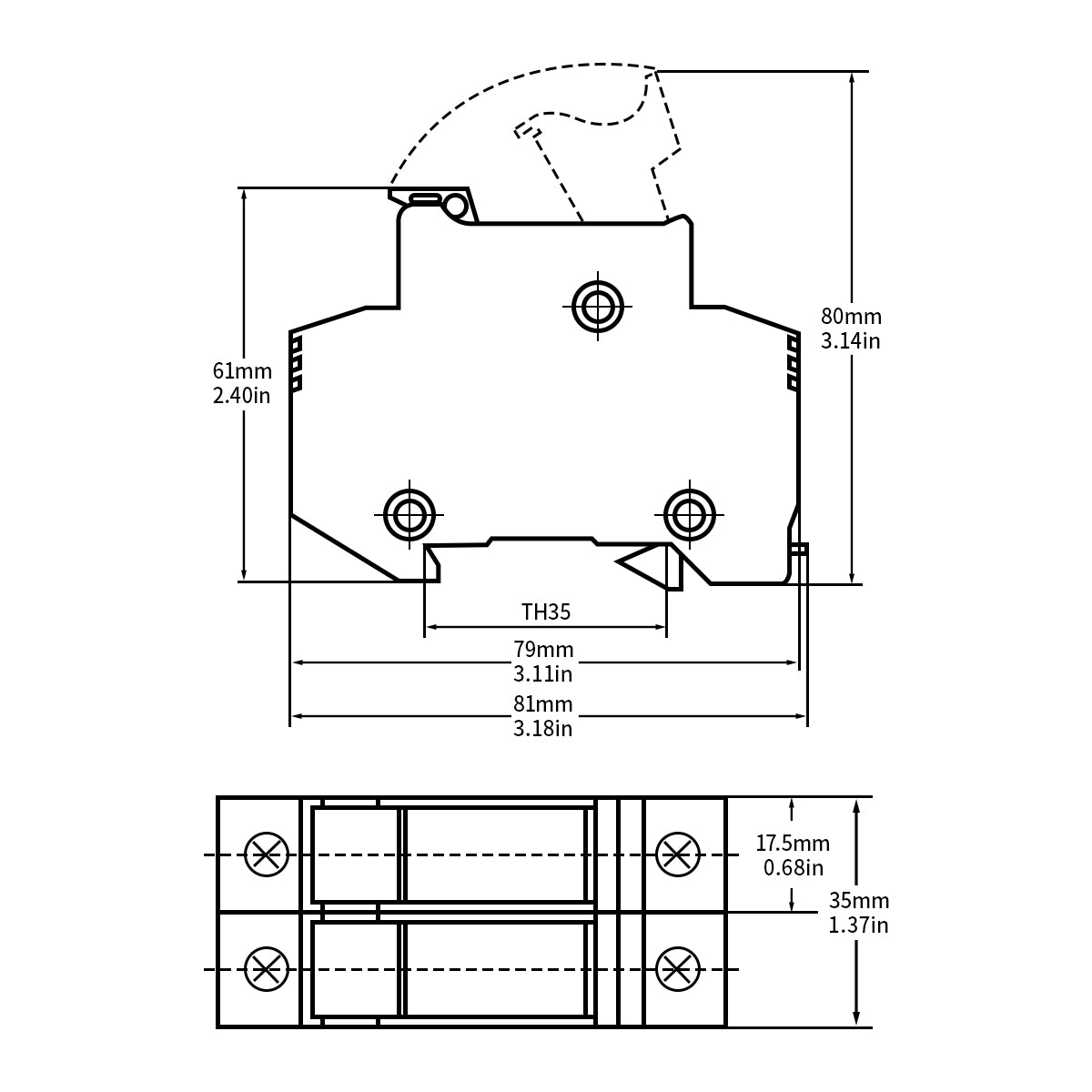 - Fit for DIN rail: 35mm/1.4"