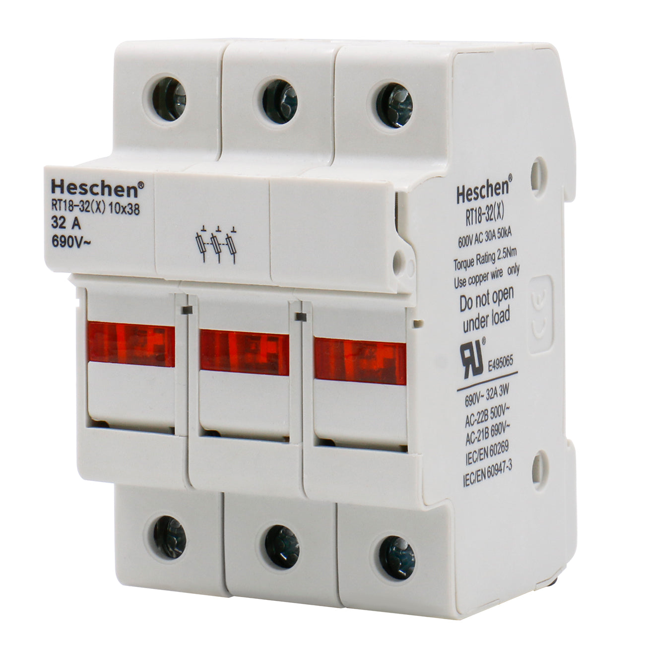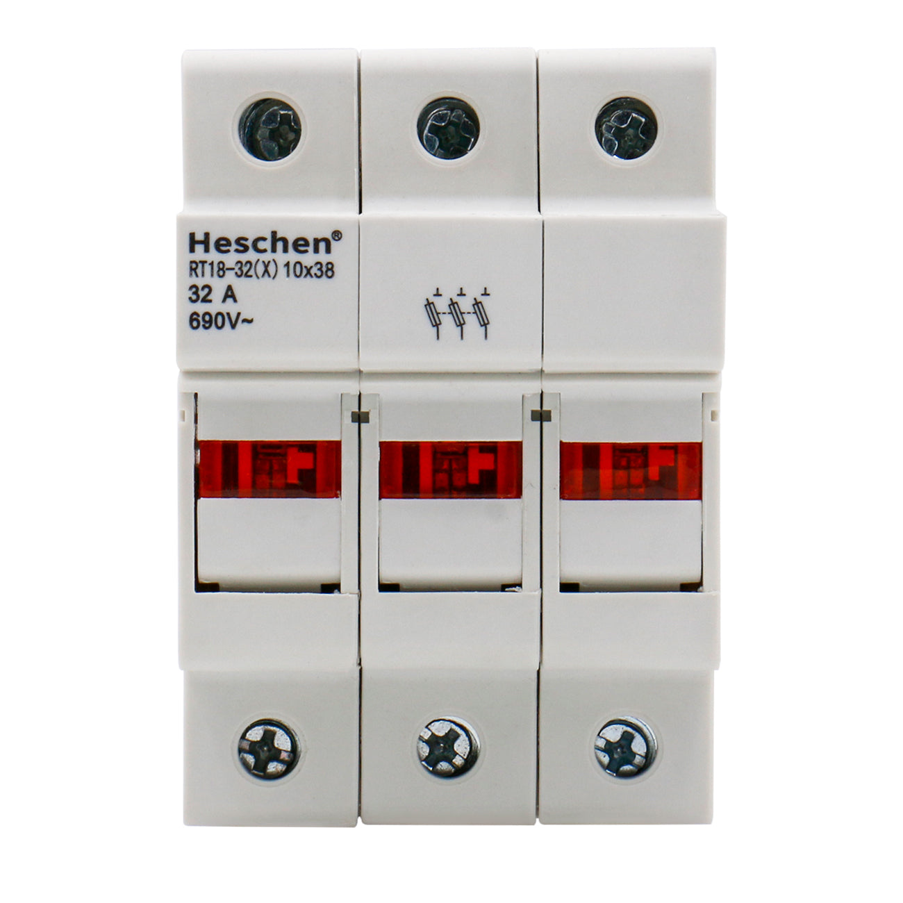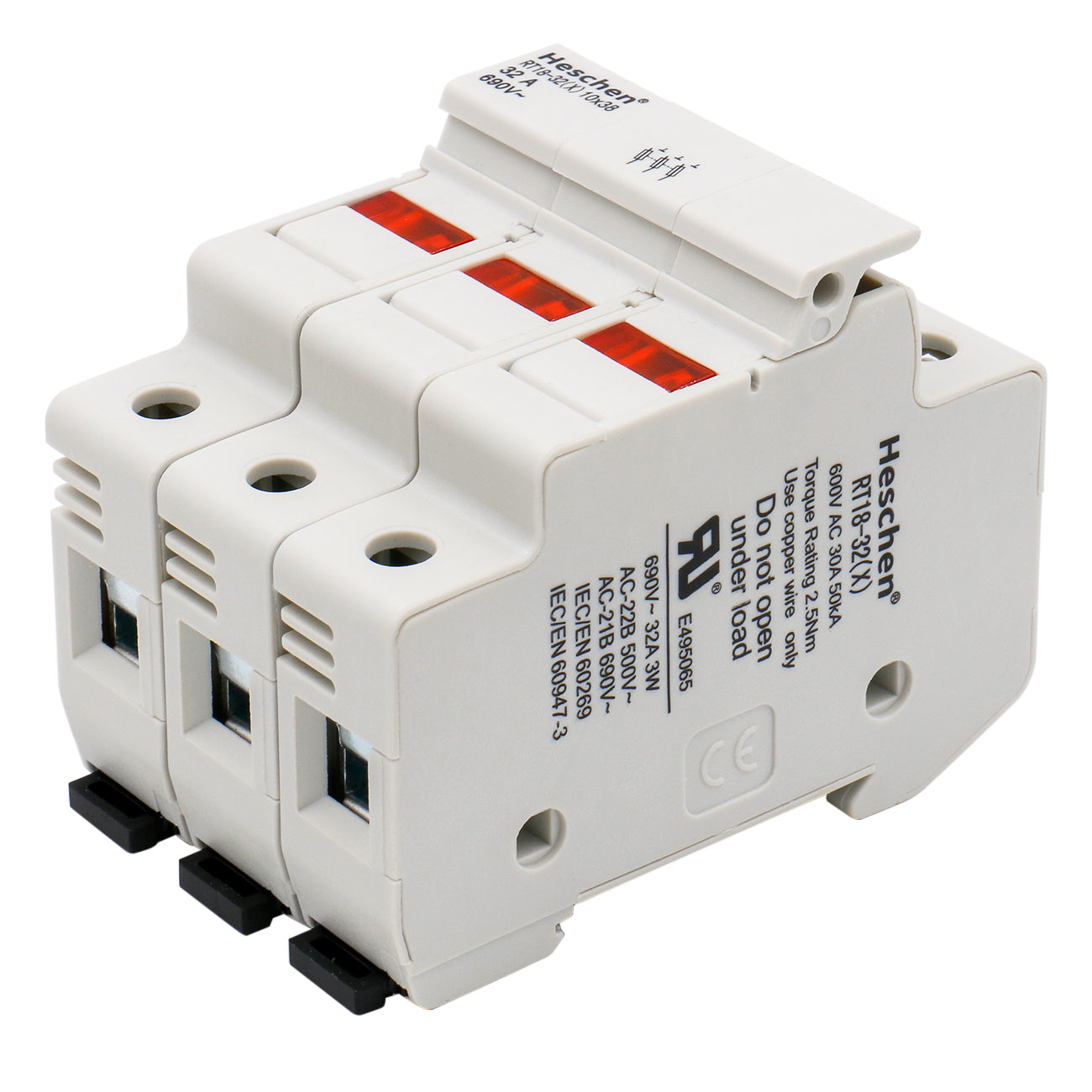 Cylindrical Fuse Holder Base RT18-32(X) 32A AC690V 3 Pole DIN Rail Mounting for 10 x 38mm Fuse CE UL Listed