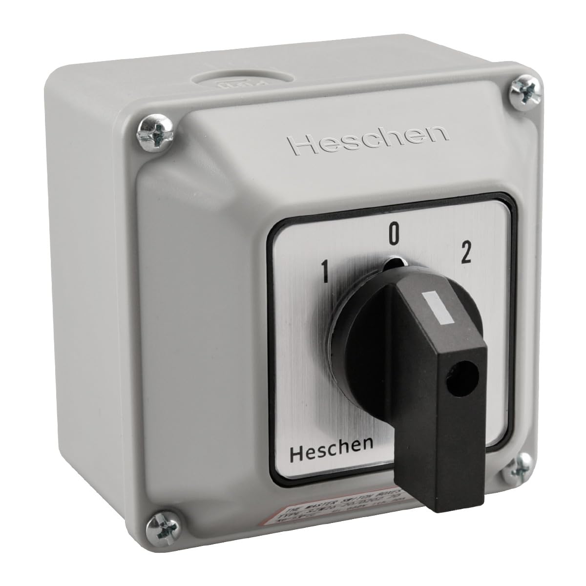 Heschen Universal Rotary Cam Selector Changeover Switch SZW26-20/D202.2D with Master Switch Exterior Box LW28-20/4 660V 20A ON-OFF-ON 3 Position 2 Phase 8 Terminals CE