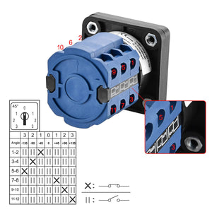 Heschen Universal Rotary Cam Selector Changeover Switch SZW26-20/ZC.FF.3 660V 20A 7 Position 3 Phase 12 Terminals CE