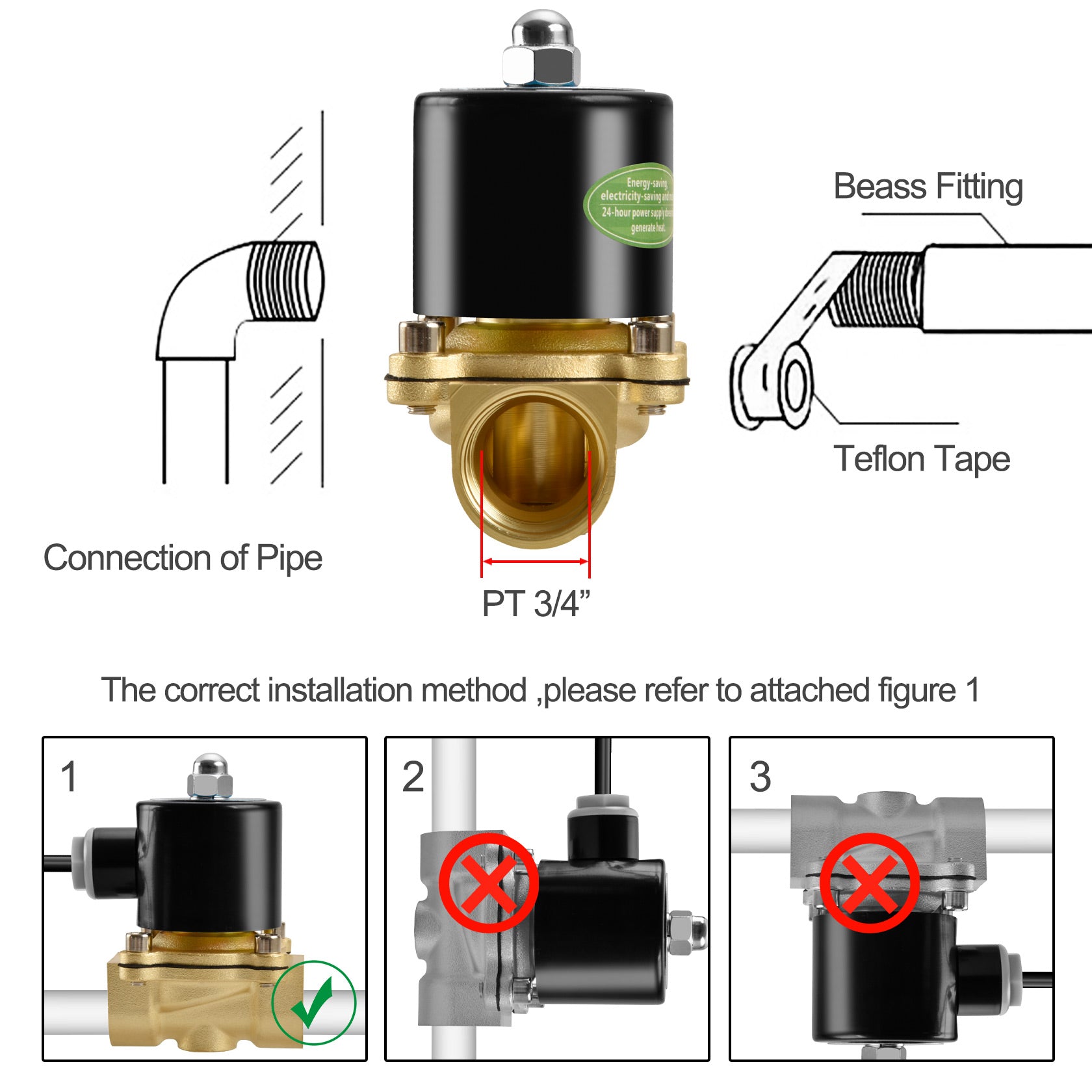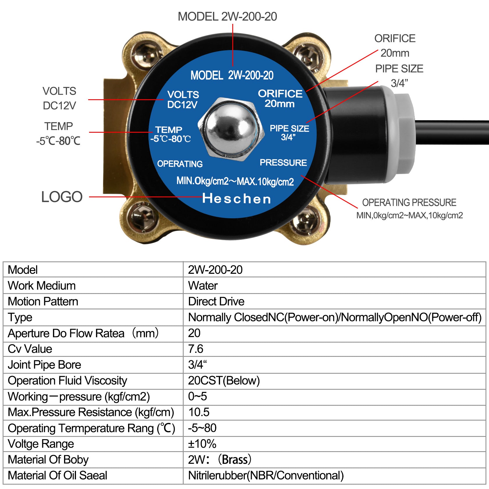 Heschen Brass Electric Solenoid Valve 3/4 Inch Direct Action Water Air Gas Normally Closed 2/2 Way