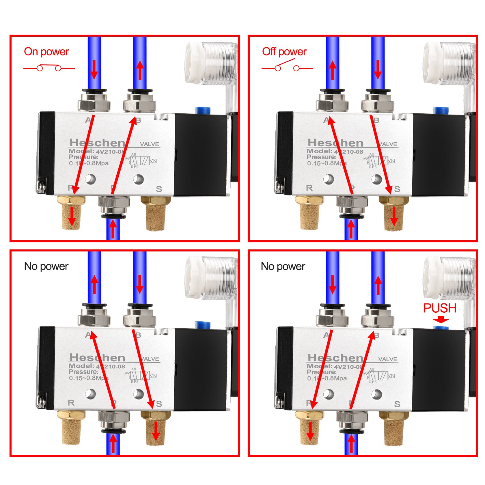 Heschen Electrical Pneumatic Solenoid Valve 4V210-08 PT1/4 5 Way 2 Position CE with Fittings and Mufflers