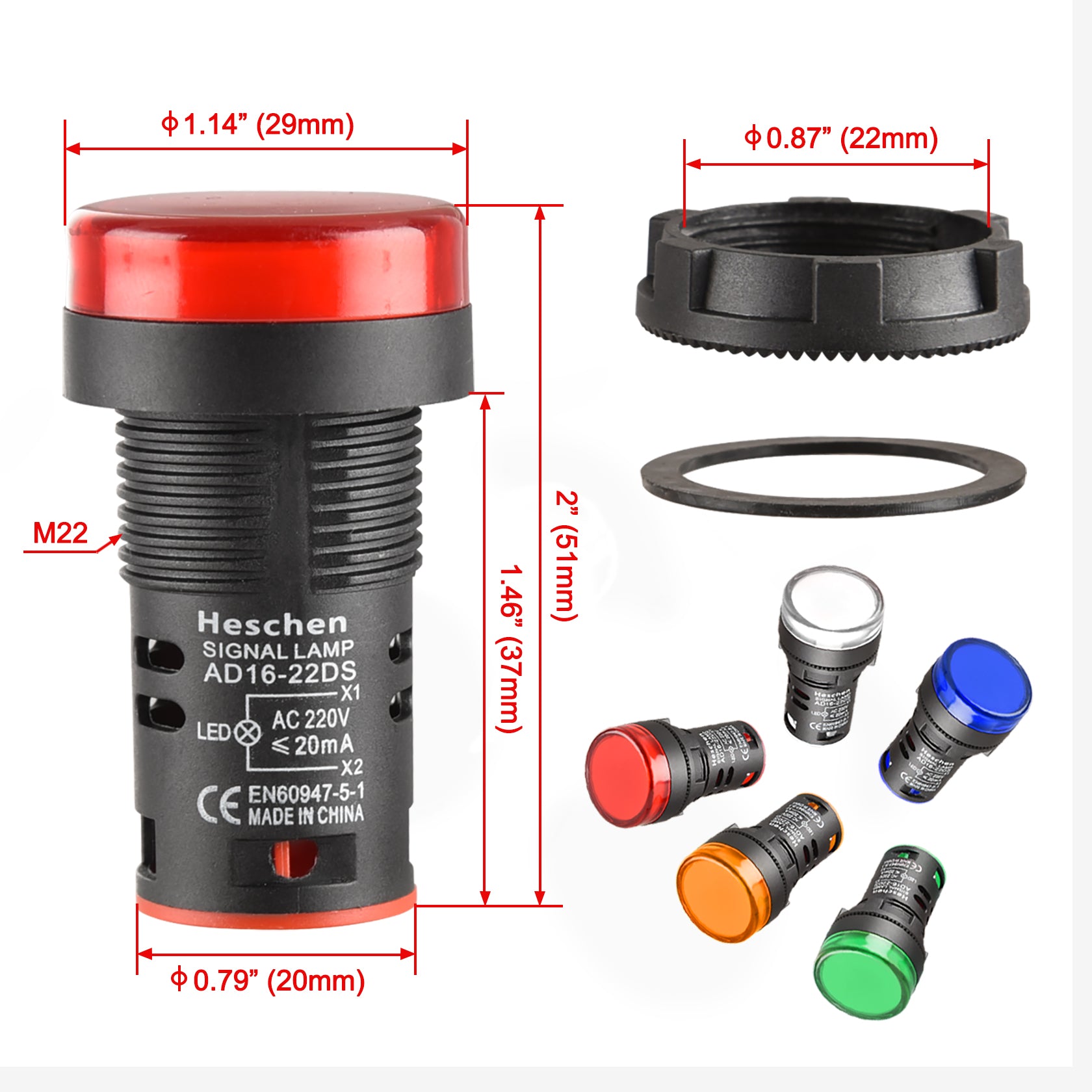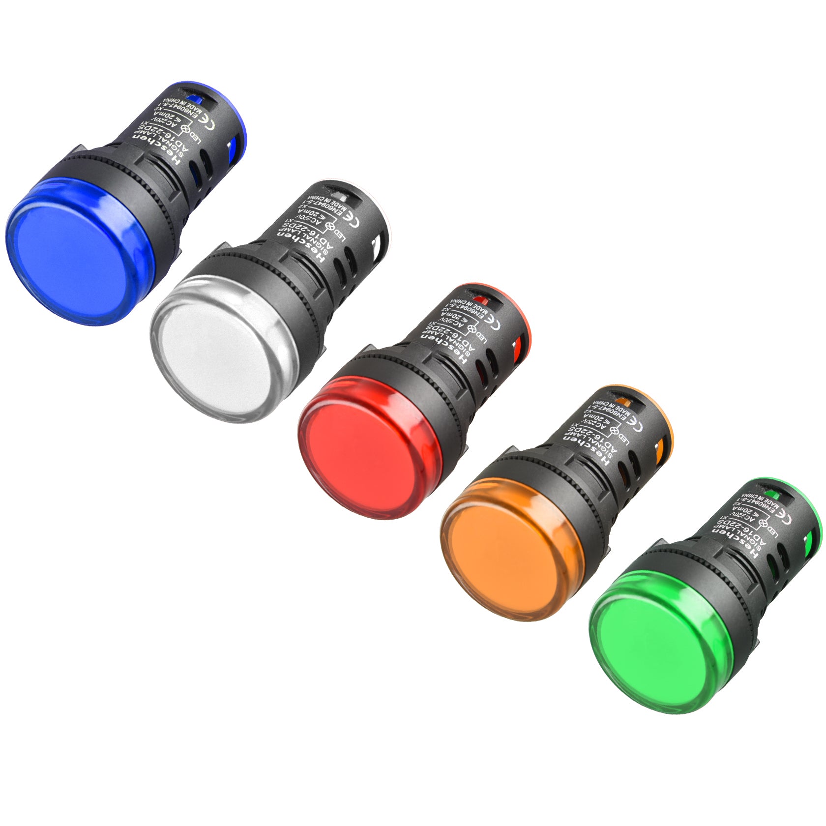 Heschen 5-Pack LED Indicator Light Pilot Signal Lamp AD16-22DS DC 12V/24V AC 110V/220V 20mA per color- Red/Green/Blue/Yellow/White