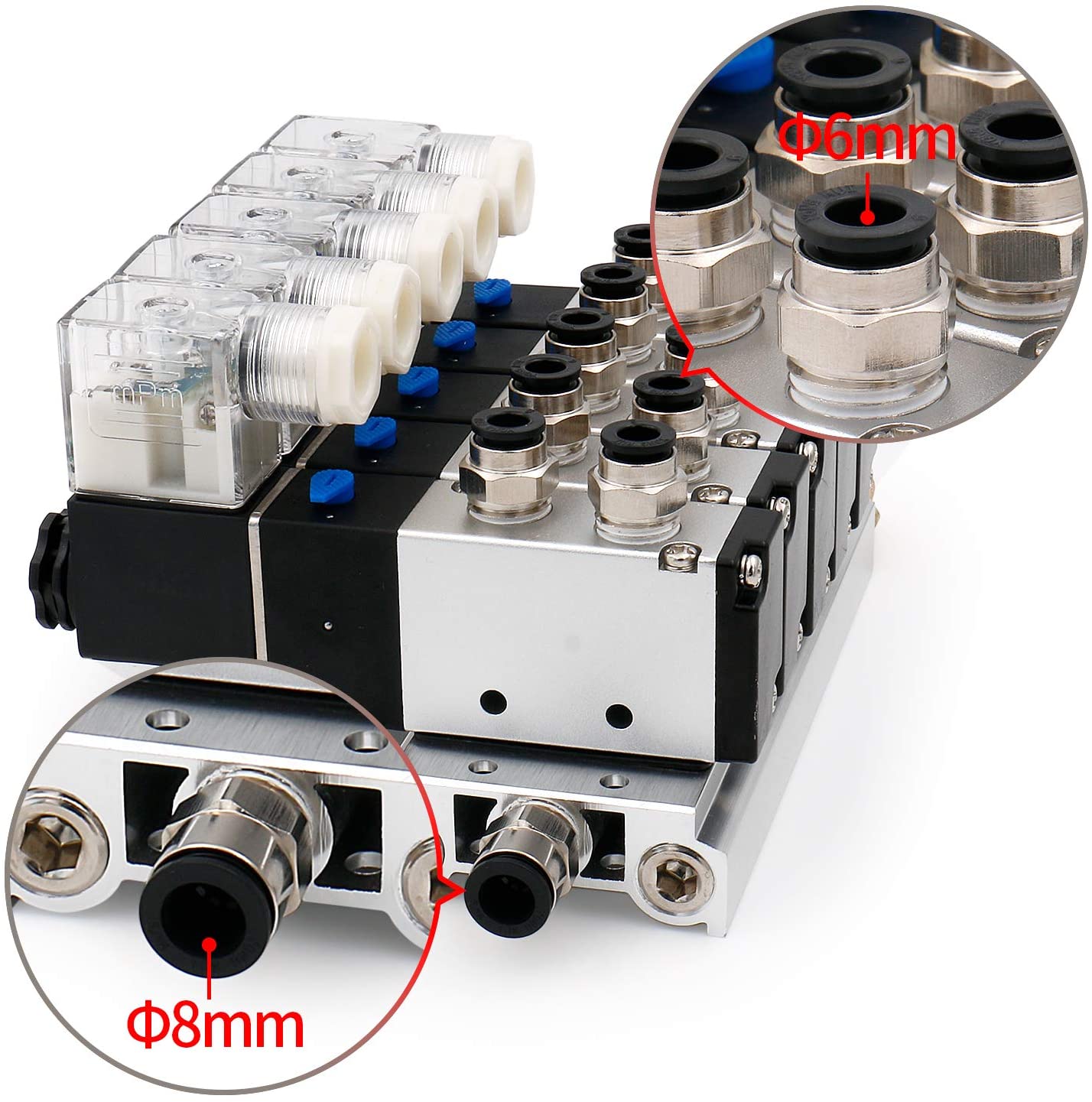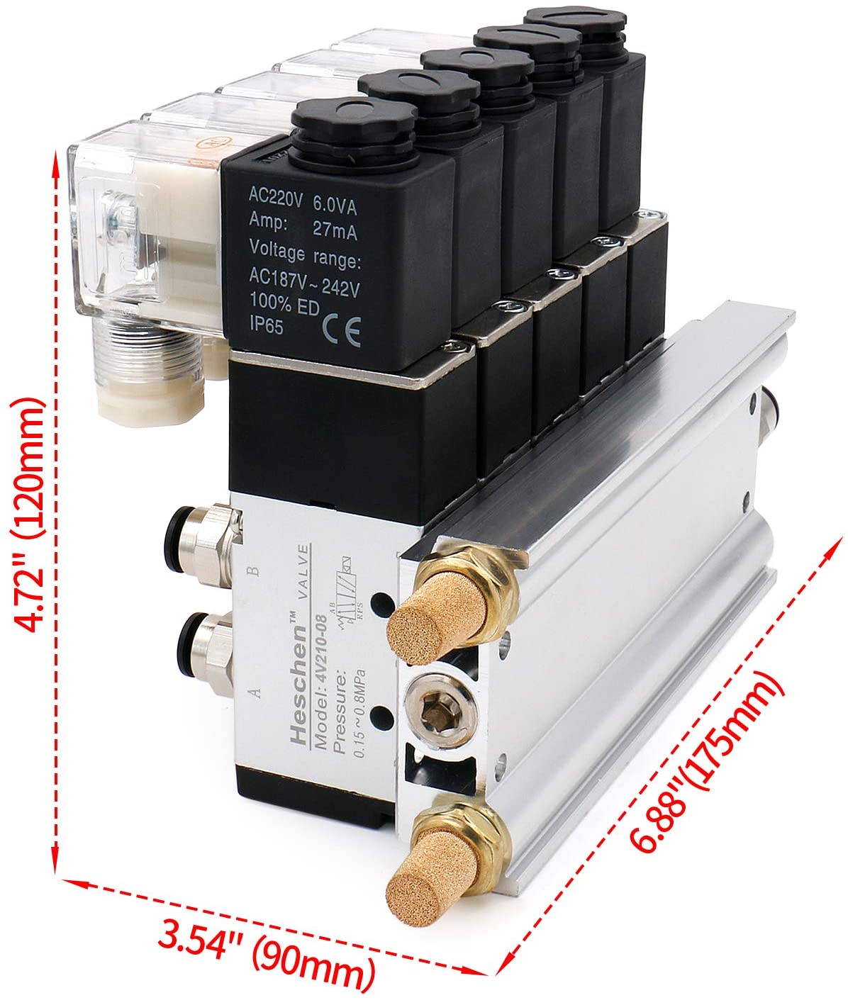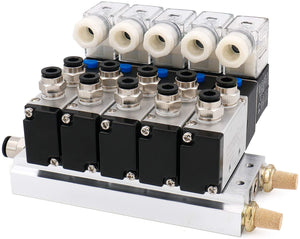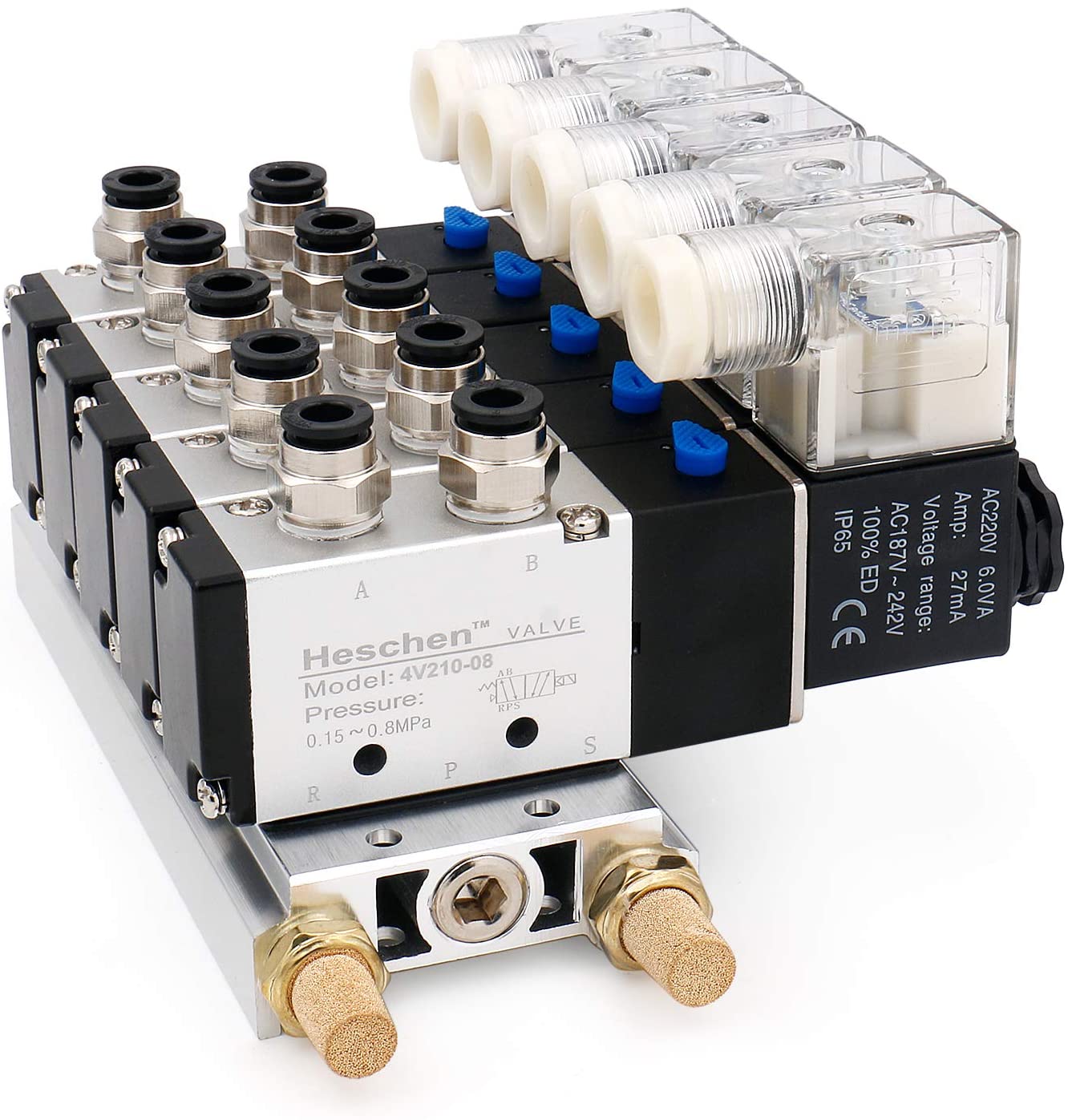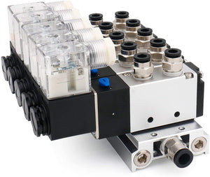 Heschen Electrical Pneumatic 5 Solenoid Valve 4V210-08 PT1/4 5 Way 2 Position Manifold Base Muffler Quick Fittings Set