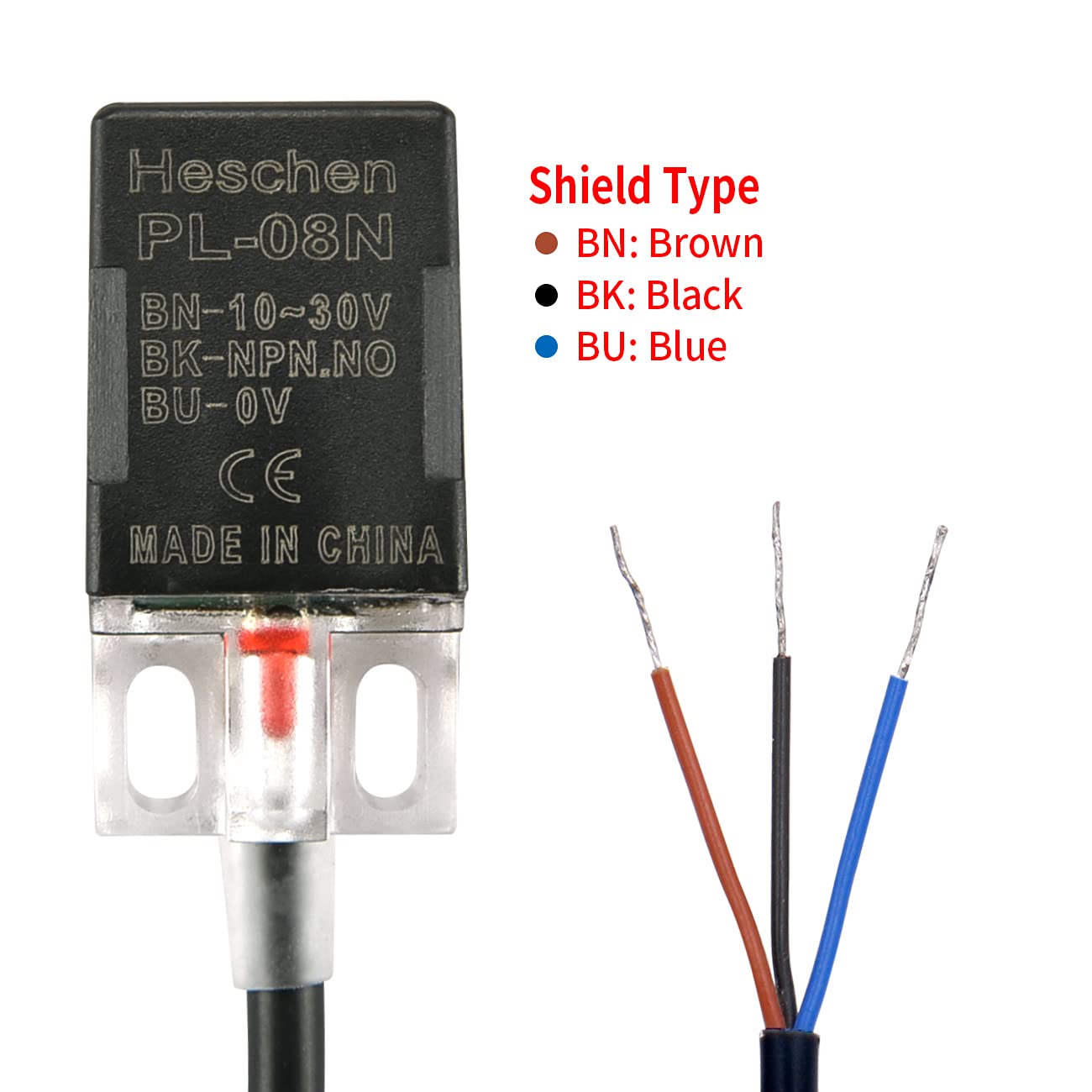 Heschen Square Inductive Proximity Sensor Switch Non-Shield Type PL-08N Detector Distance 8mm 10-30VDC 200mA NPN Normally Open(NO) 3 Wire Pack of 2