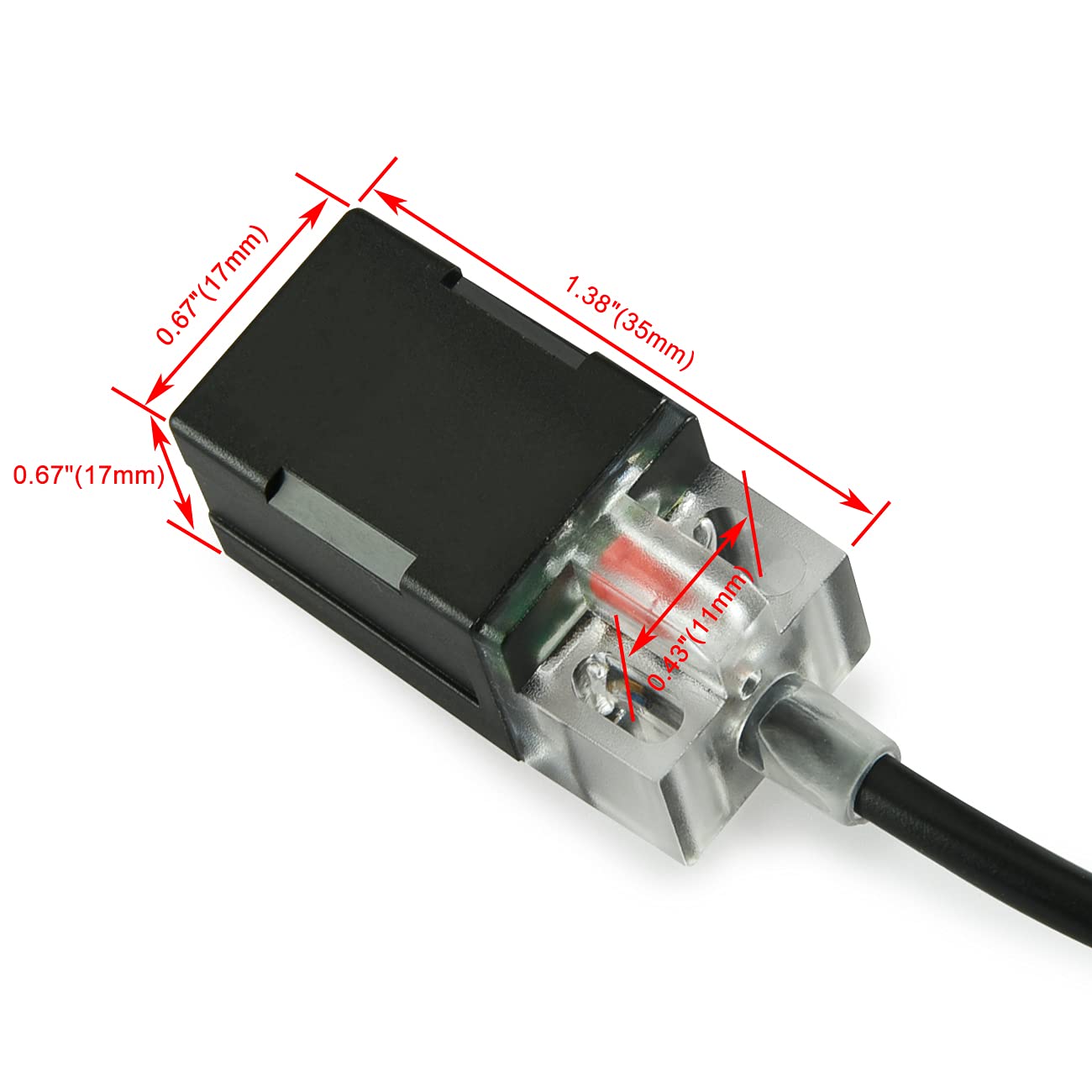 Detect Object: Magnetic Metal(the detection distance decreases when it is non-magnetic metal);Detection distance 8mm;Set distance 0-7mm;Power: AC90-250V;Temperature range -25 -+60℃;Isolation Resistance >50MΩ;Material ABS;Dimension: 17X17X35mm;Mounting Way: Non-shield type;CE certified.