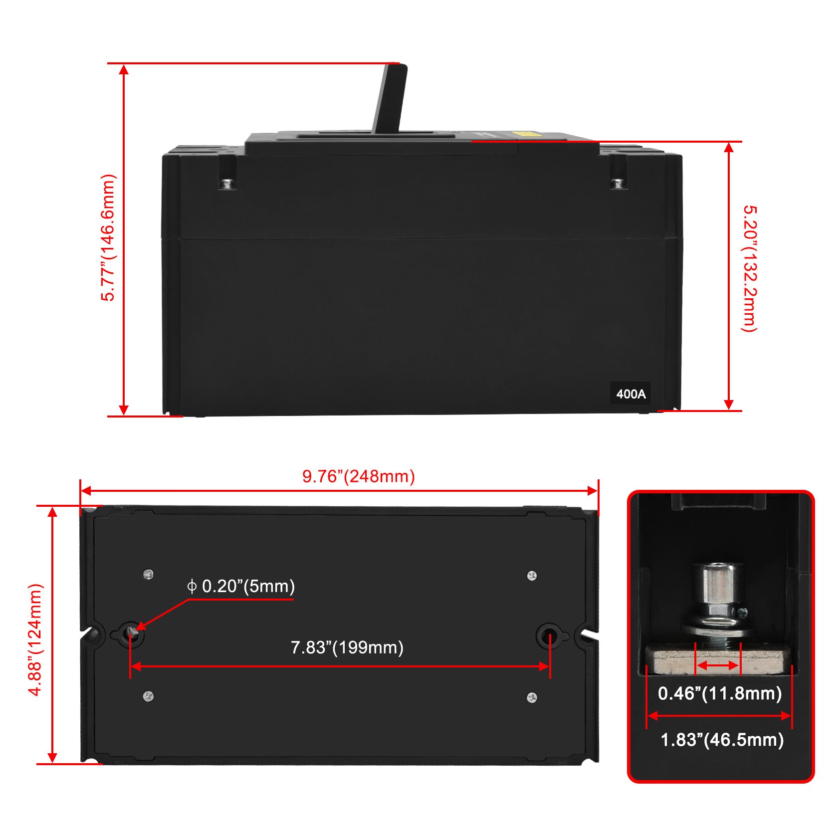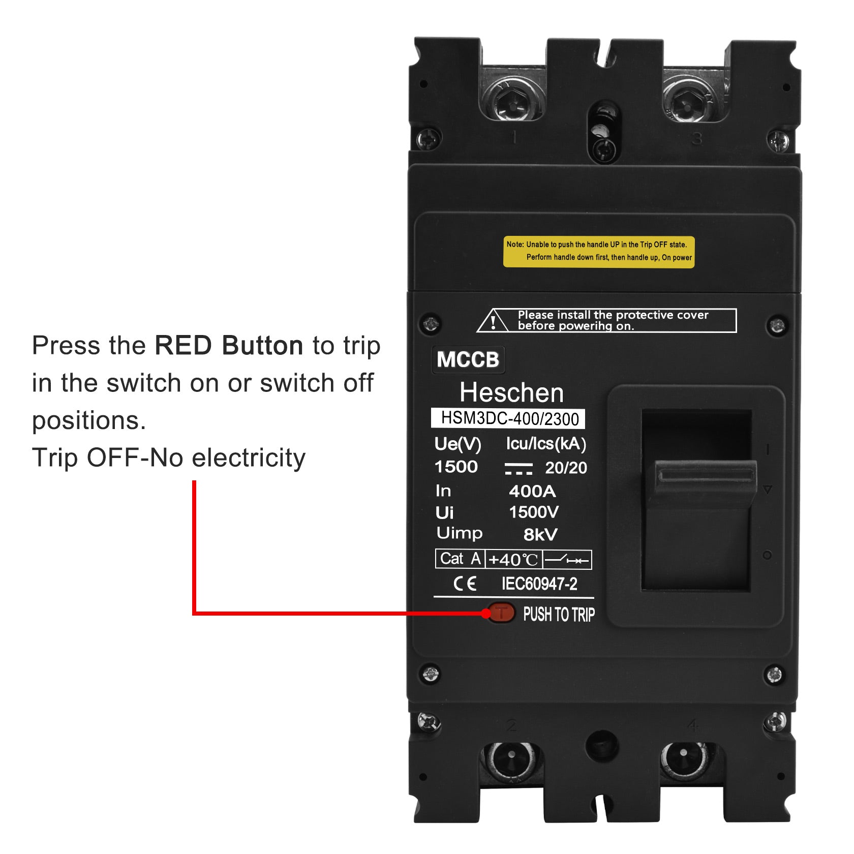 Heschen DC Molded Case Circuit Breaker MCCB, HSM3DC-400, 2 Poles, 1500V 400A, Photovoltaic Circuit Breaker, for Solar PV System Solar Panels Grid System