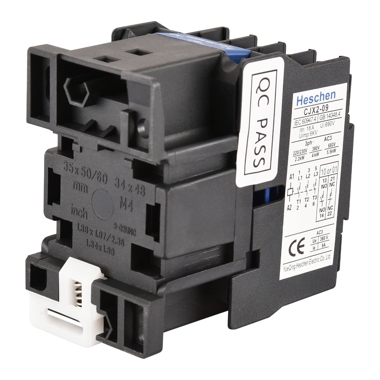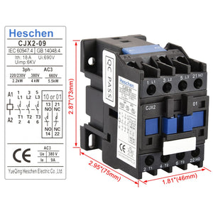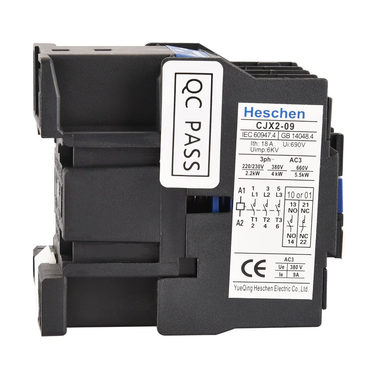 Heschen AC Contactor CJX2-0910 220V 50/60Hz Coil 3P 3 Pole Normally Open Ie 9A Ue 380V