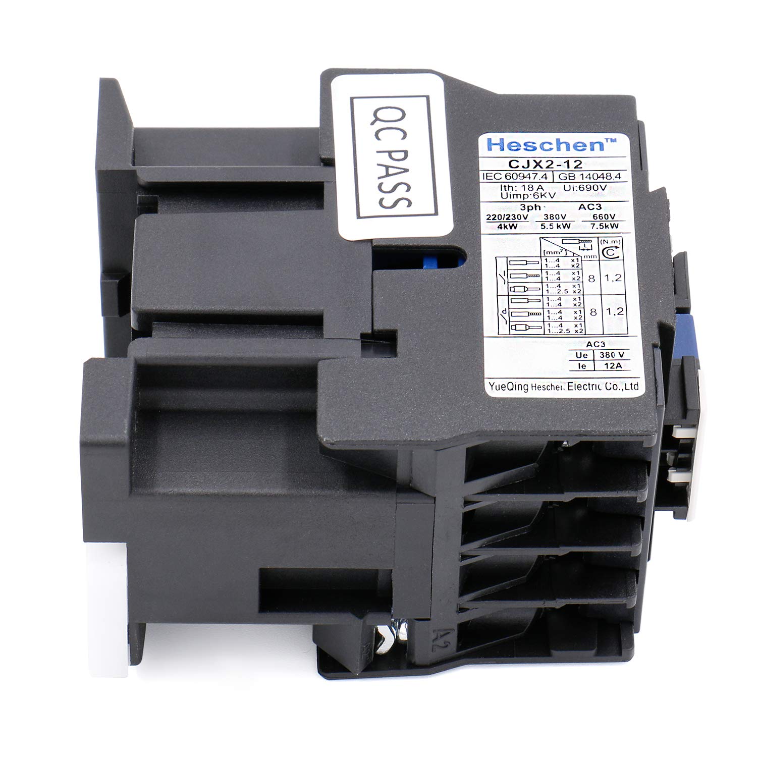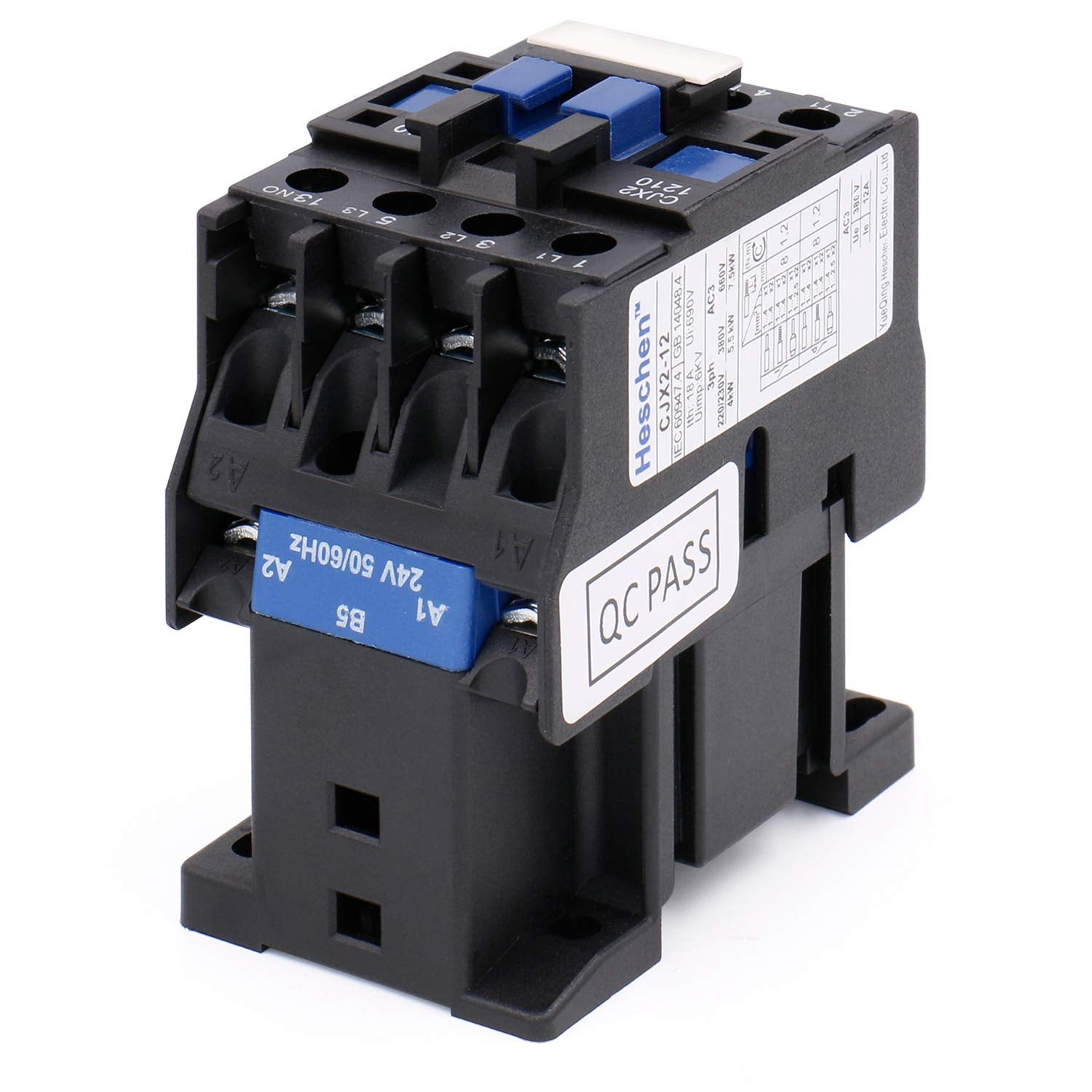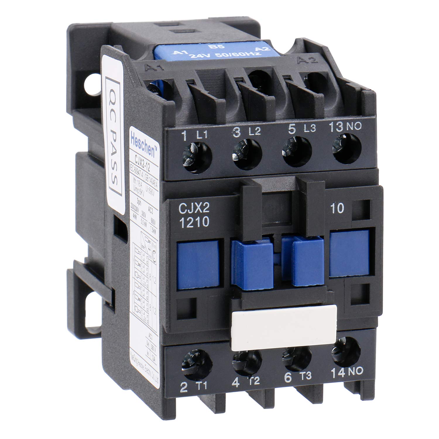 Heschen AC Contactor CJX2-1210 24V 50/60Hz Coil 3P 3 Pole Normally Open Ie 12A Ue 380V