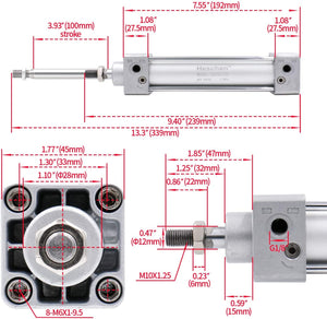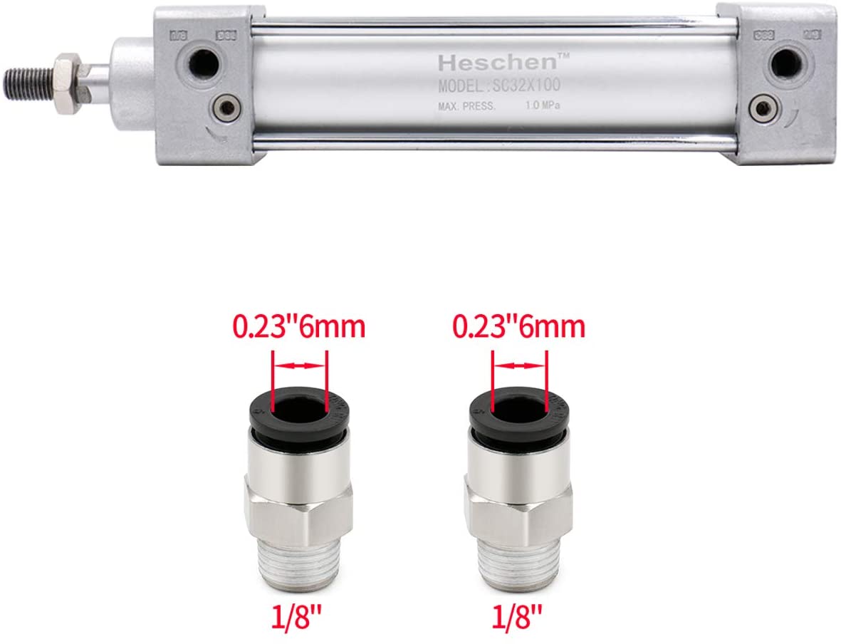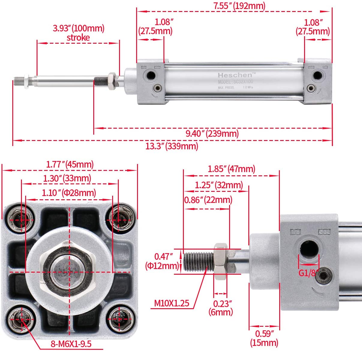 Heschen Pneumatic Standard Cylinder SC 32 PT1/8 port, 32mm(1 1/4") Bore, Single Rod Double Action with 2 Fittings