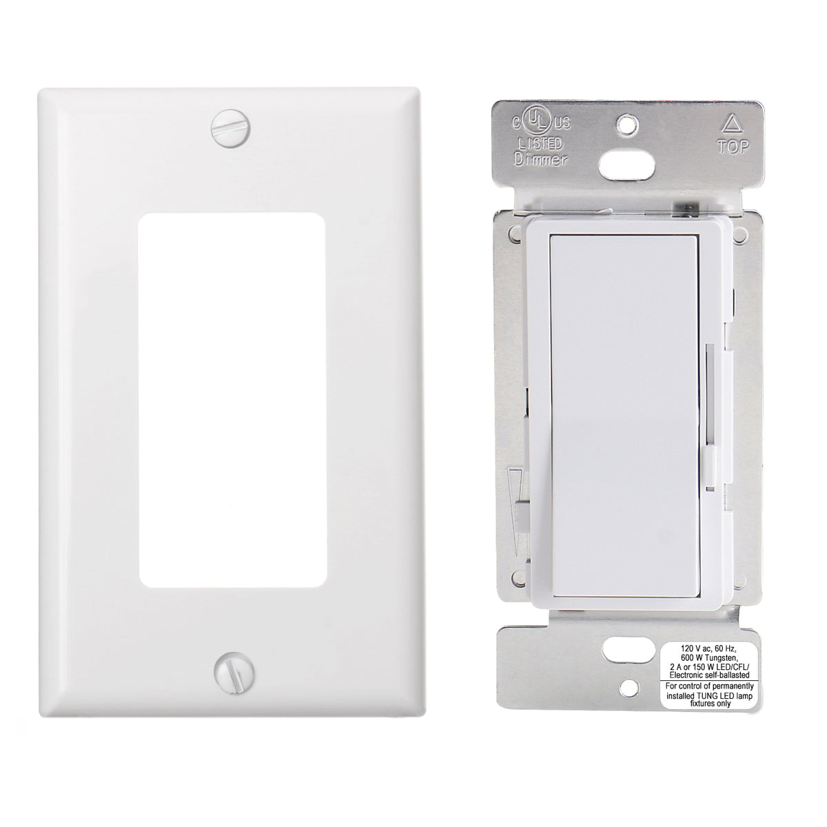 Decora Slide Dimmer with Wall Plate,LED/CFL/Incandescent, Single-Pole 3-Way, 120V 600W, on/Off Switch, White