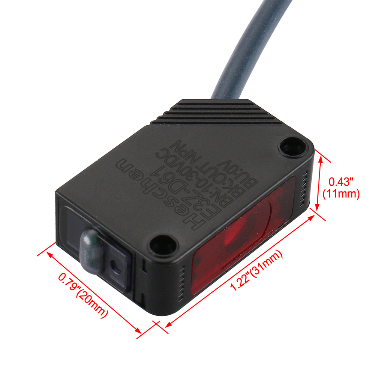 Heschen Diffuse Reflection Photoelectric Sensor Switch E3Z-D61, DC 10-30V, 200mA, NPN, Detection 30-100mm for Machine Tools Metallurgy, Chemicals, Automatic Doors