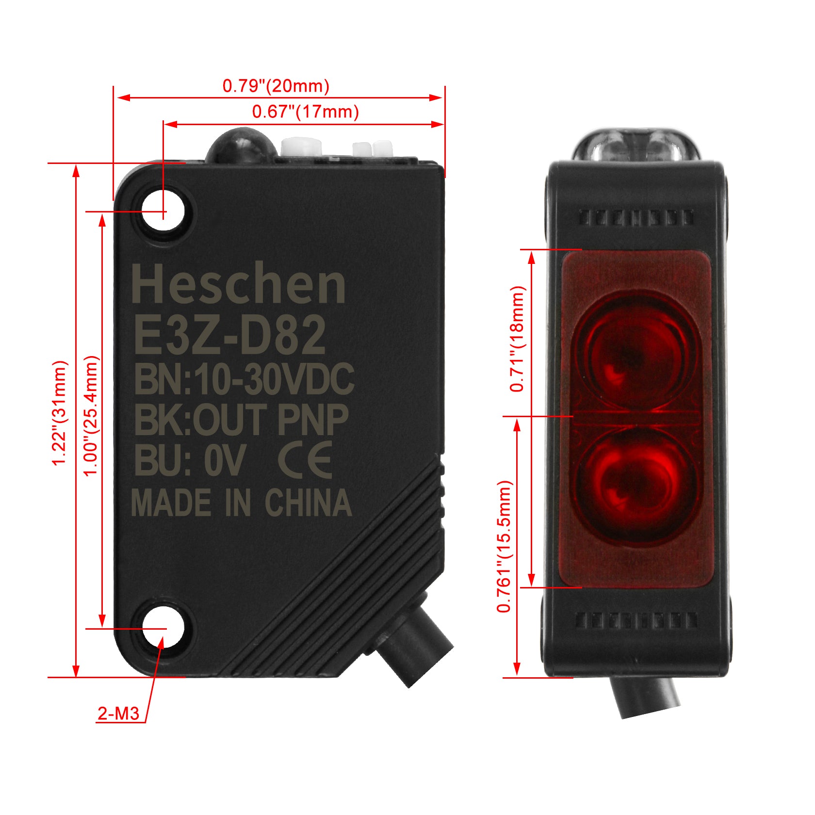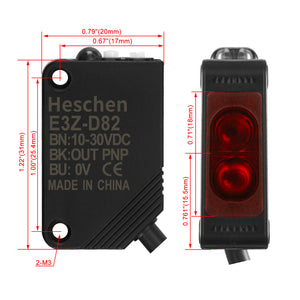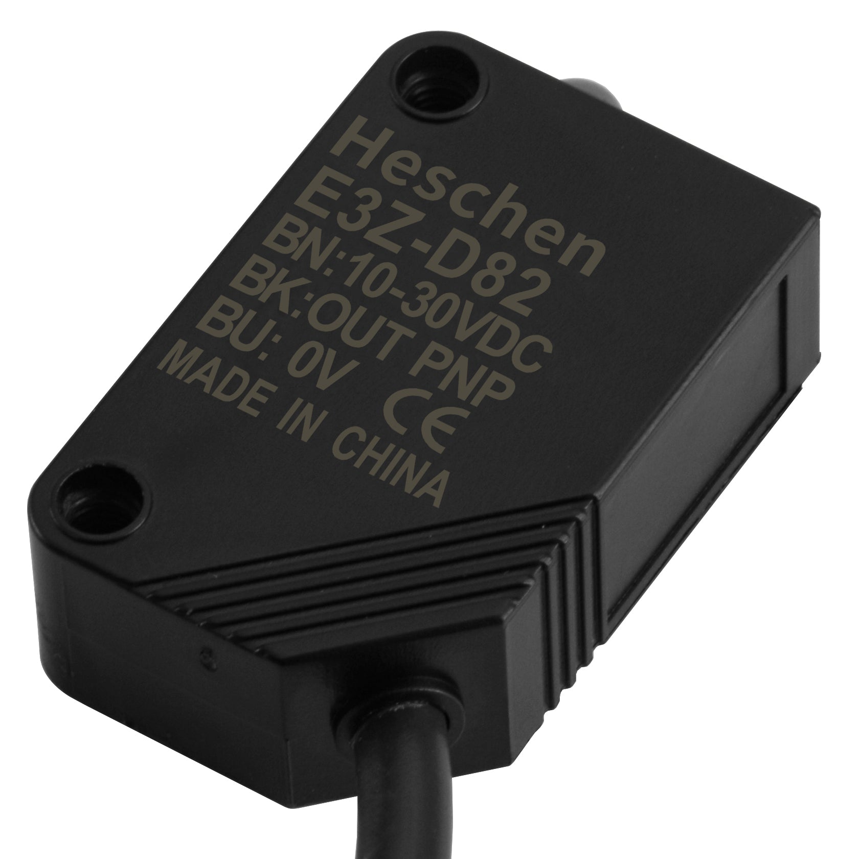Heschen Diffuse Reflection Photoelectric Sensor Switch E3Z-D82, DC 10-30V, 200mA, PNP, Detection 50-300mm for Machine Tools Metallurgy, Chemicals, Automatic Doors