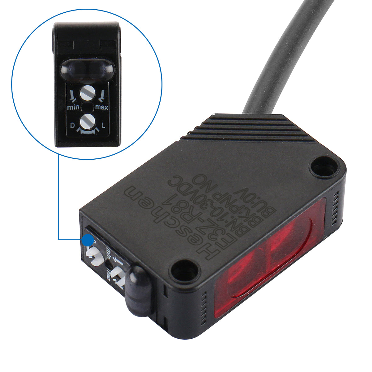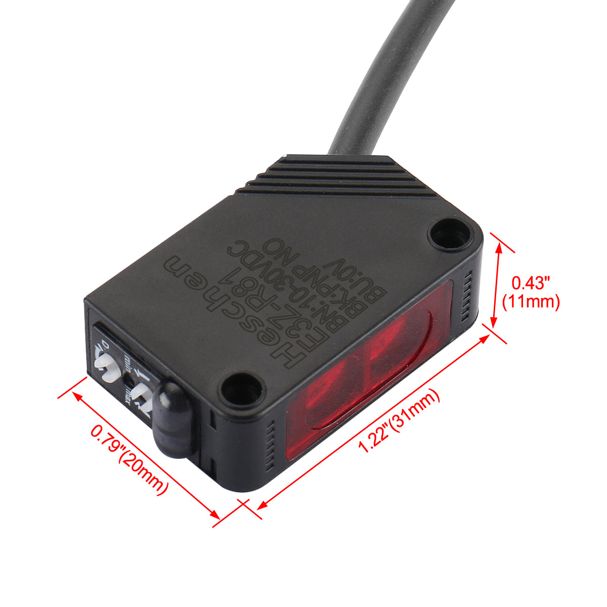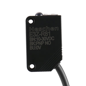 Heschen 2M Compact Photoelectric Sensor E3Z-R81,Retro-Reflective Type with M.S.R. Function, PNP (NO Or NC Switchable) Sensing Distance 20-350cm with Reflector Panel